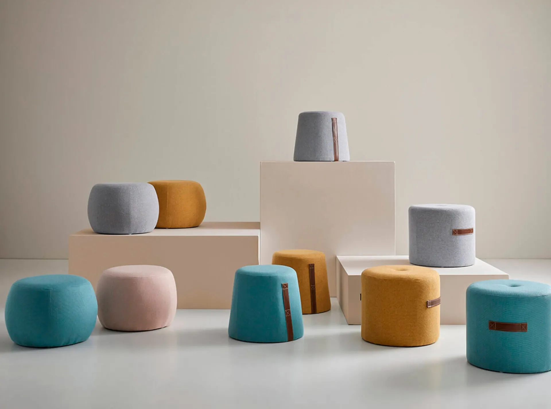 Puf con forma de cono y asa lateral que proporcionará un espacio más original y divertido al combinarlo con otros modelos de diferentes colores y tamaños.