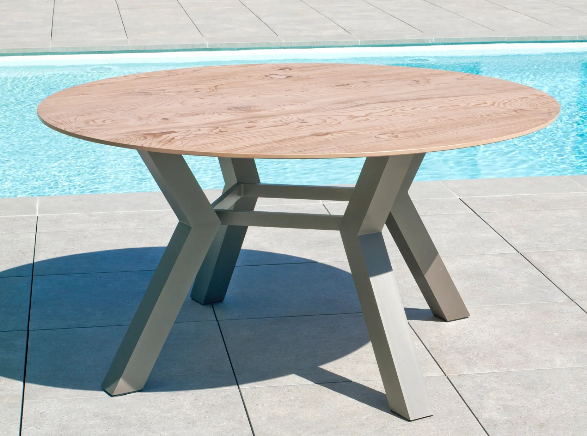 Piedra sinterizada Neolith que imita a la madera. Resistente a altas y bajas temperaturas, a las quemaduras y rayaduras. No libera sustancias tóxicas.