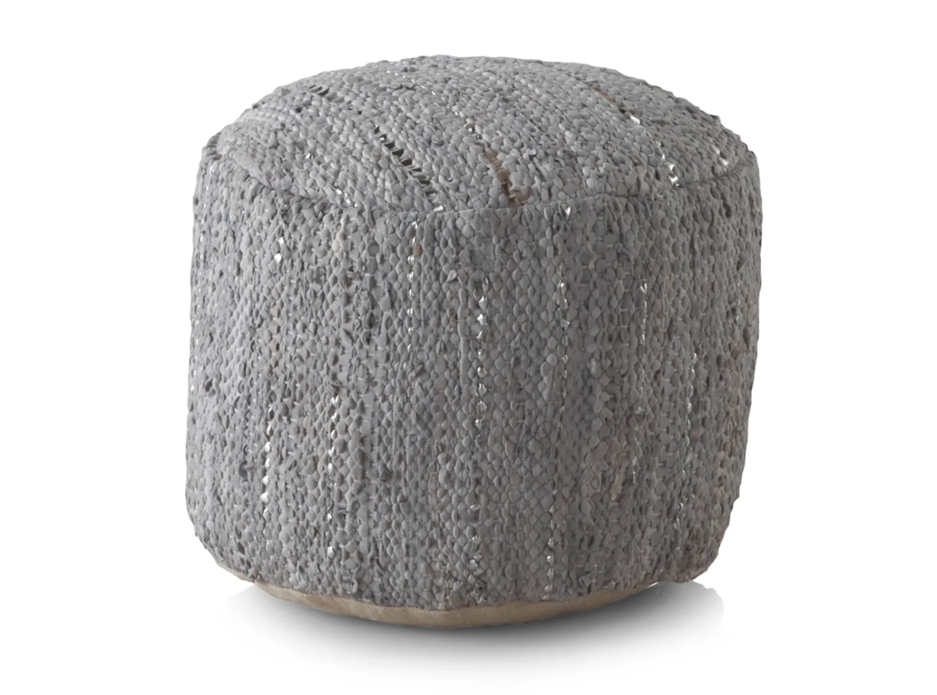 Decora tu hogar con este puf tejido a mano con tela de algodón y poliéster ideal para cualquier estancia.