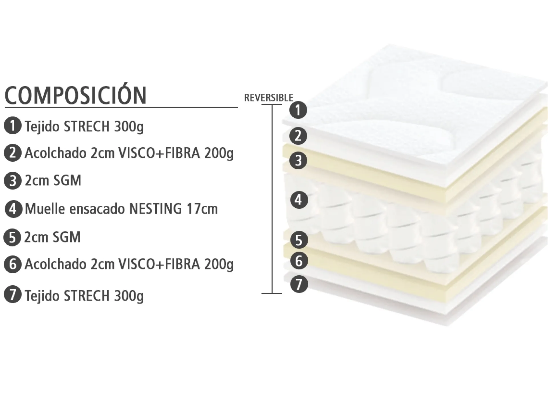 Su tejido exterior strech favorece los movimientos durante el descanso.