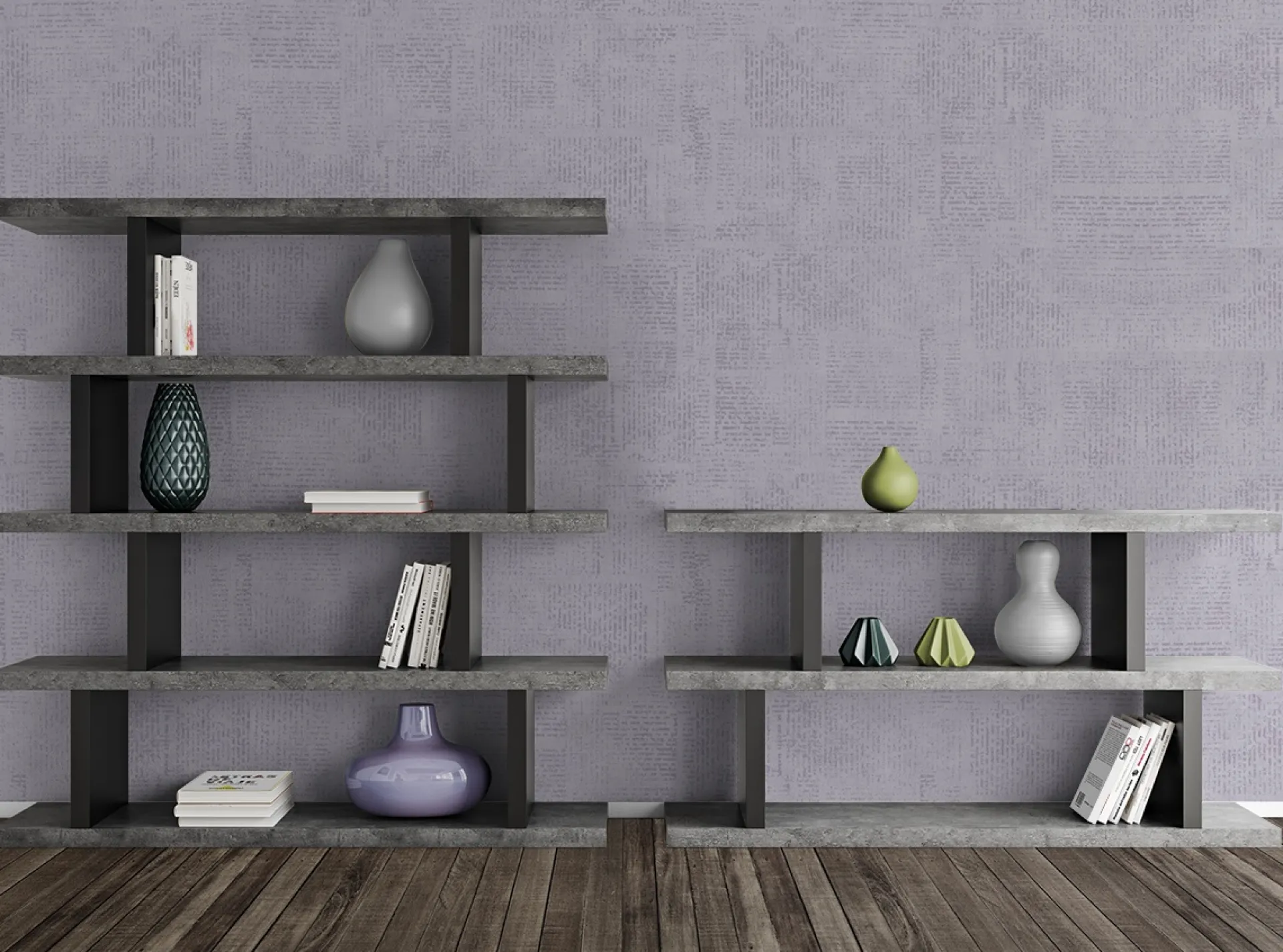Estantería pensada para ser colocada contra la pared o como divisor, ya que está terminada por ambos lados.