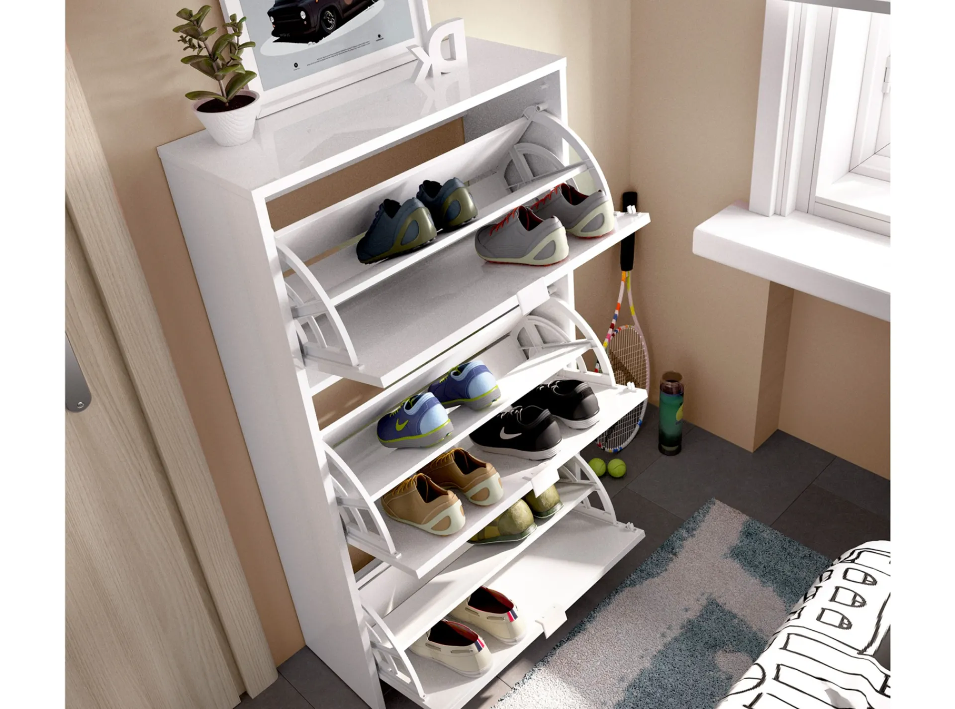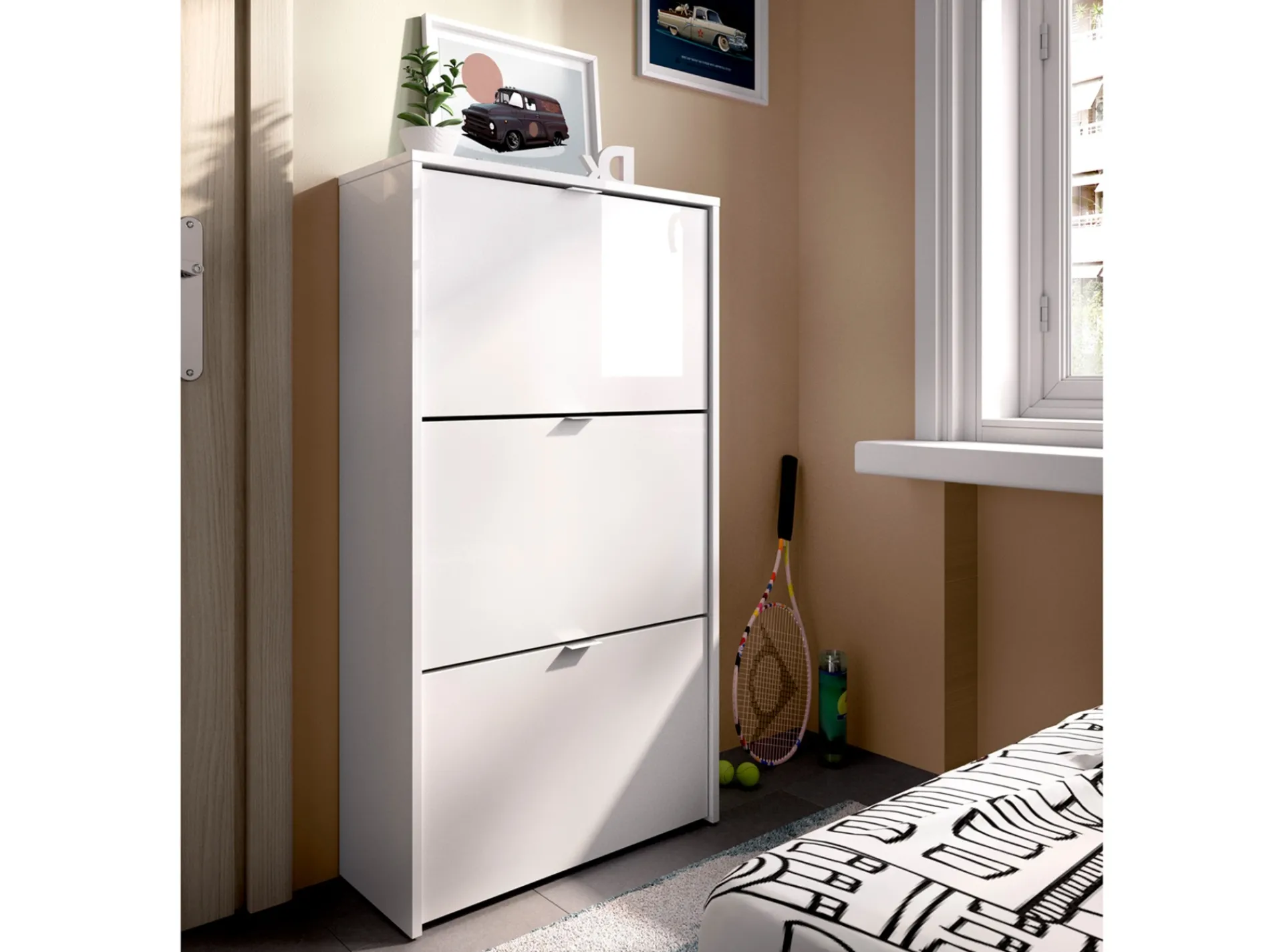 Zapatero de 3 puertas con capacidad para 18 pares, perfecto para tener el calzado de toda la familia bien organizado.