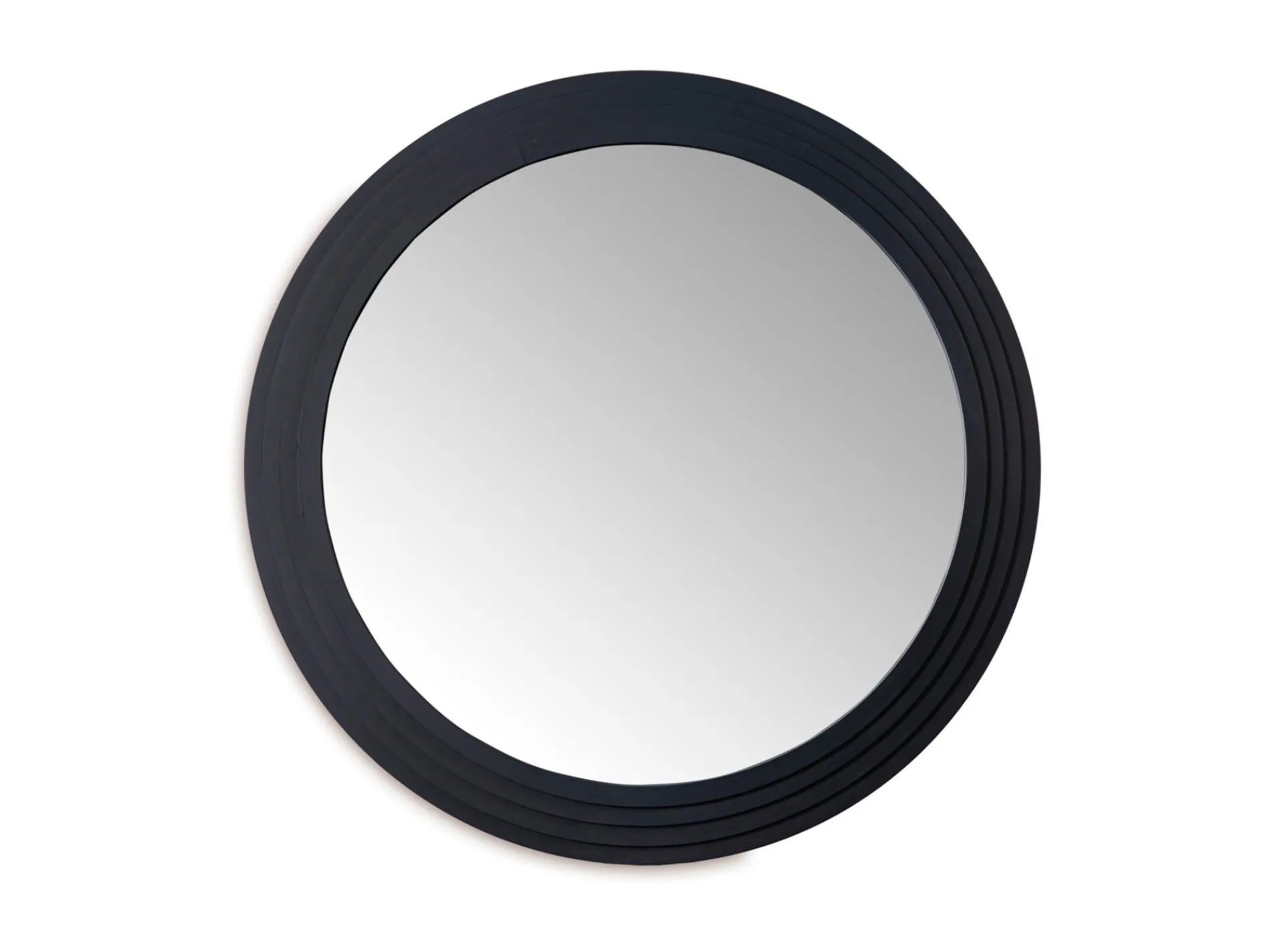 El espejo MARKIA destaca por su marco con efecto 3D en acabado negro, que aporta profundidad, elegancia y un toque moderno. Su diseño redondo y contemporáneo lo convierte en una pieza decorativa única para realzar cualquier espacio.