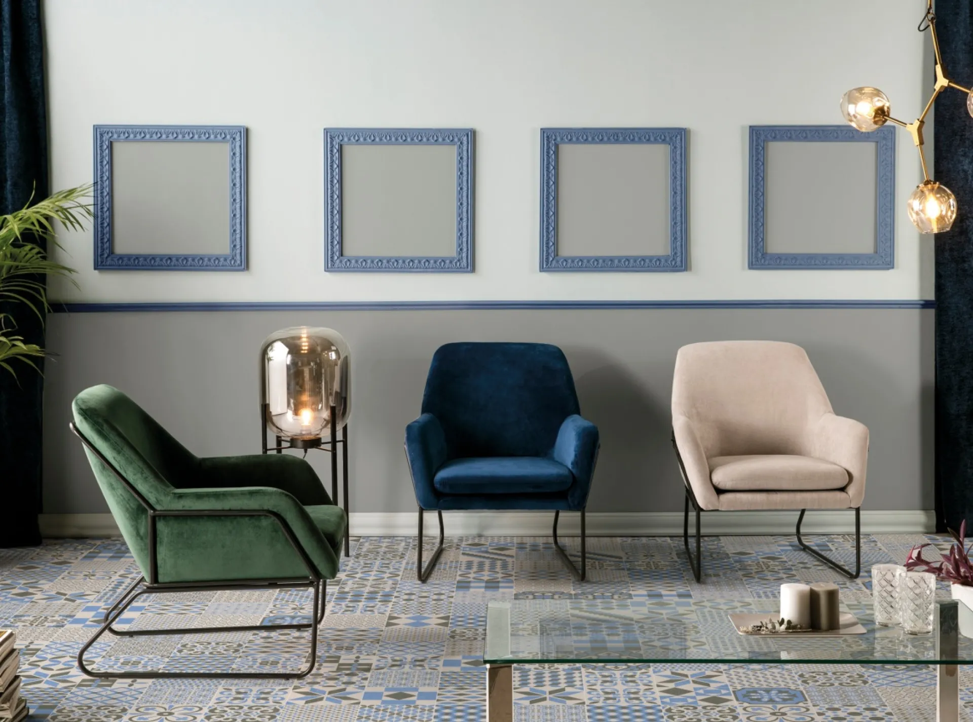Cómoda butaca con patas negras perfecta para el descanso. Tanto el acabadotela como elterciopelo proporcionan al producto un suavidad agradable en su uso.
