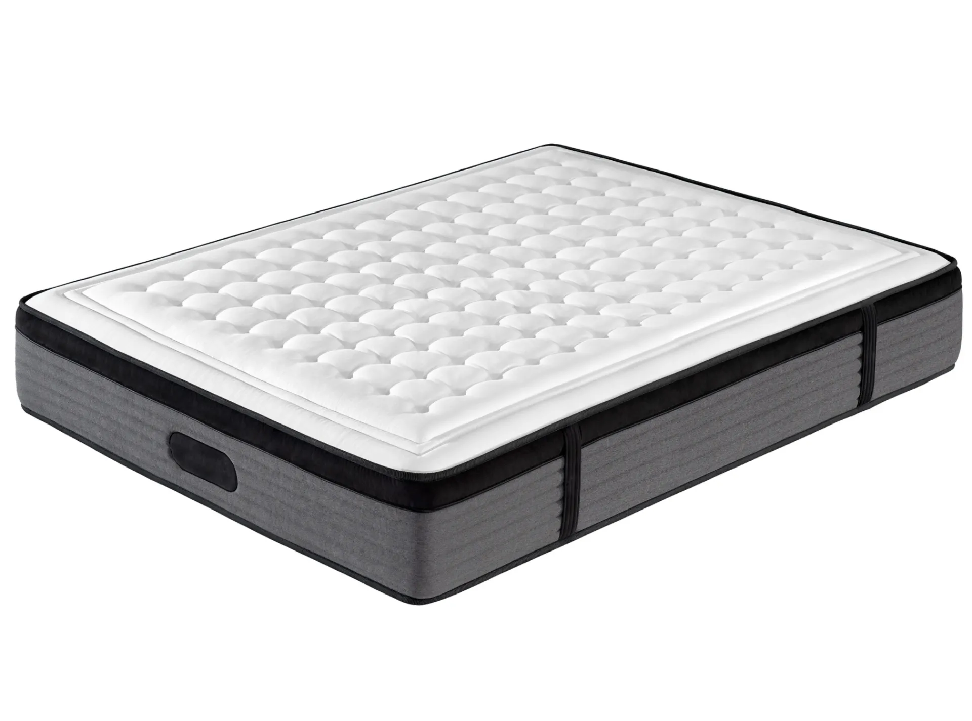 Platabanda acolchada con tejido tapicería, falso topper en tejido microfibra con cordón perimetral y 4 asas verticales laterales.