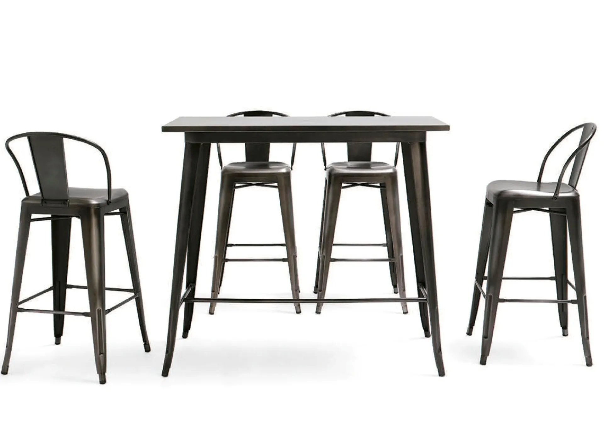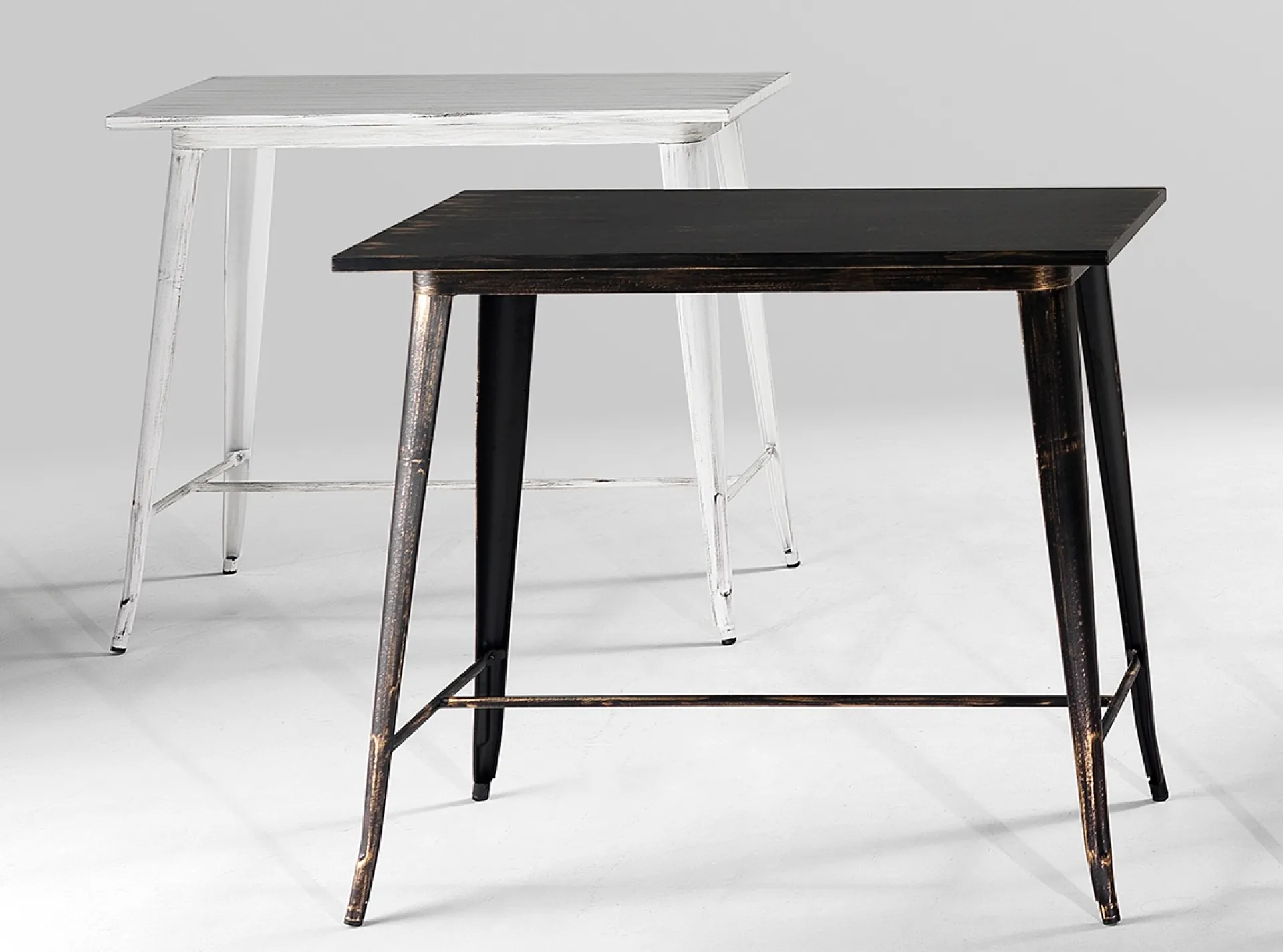 El diseño retro industrial y los detalles desgastados de esta mesa alta de acero, aportan un toque original y diferente a cualquier espacio. Es ideal para cualquier ambiente ya sea en un local comercial o en el hogar.