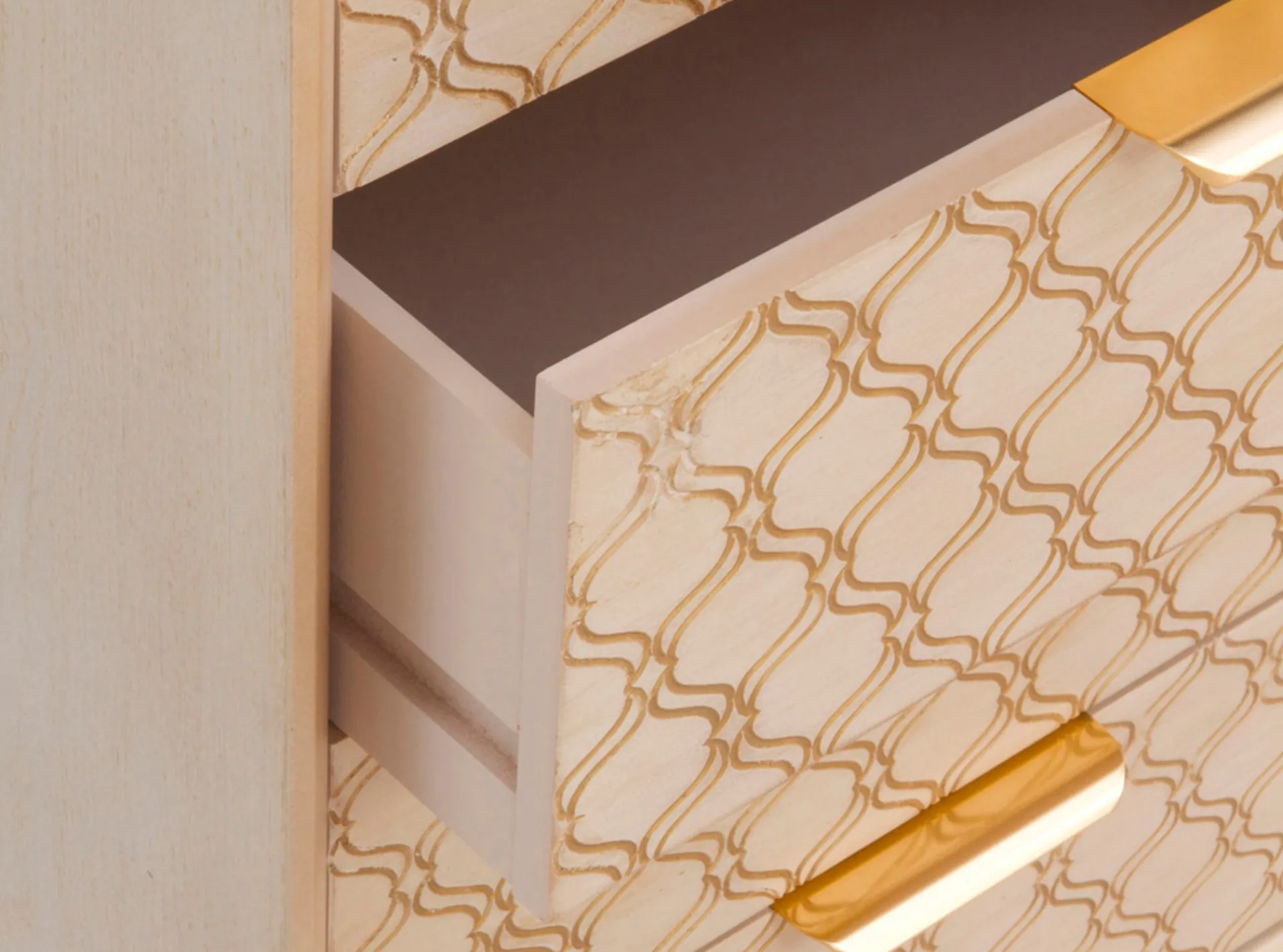 Tiradores metálicos dorados.