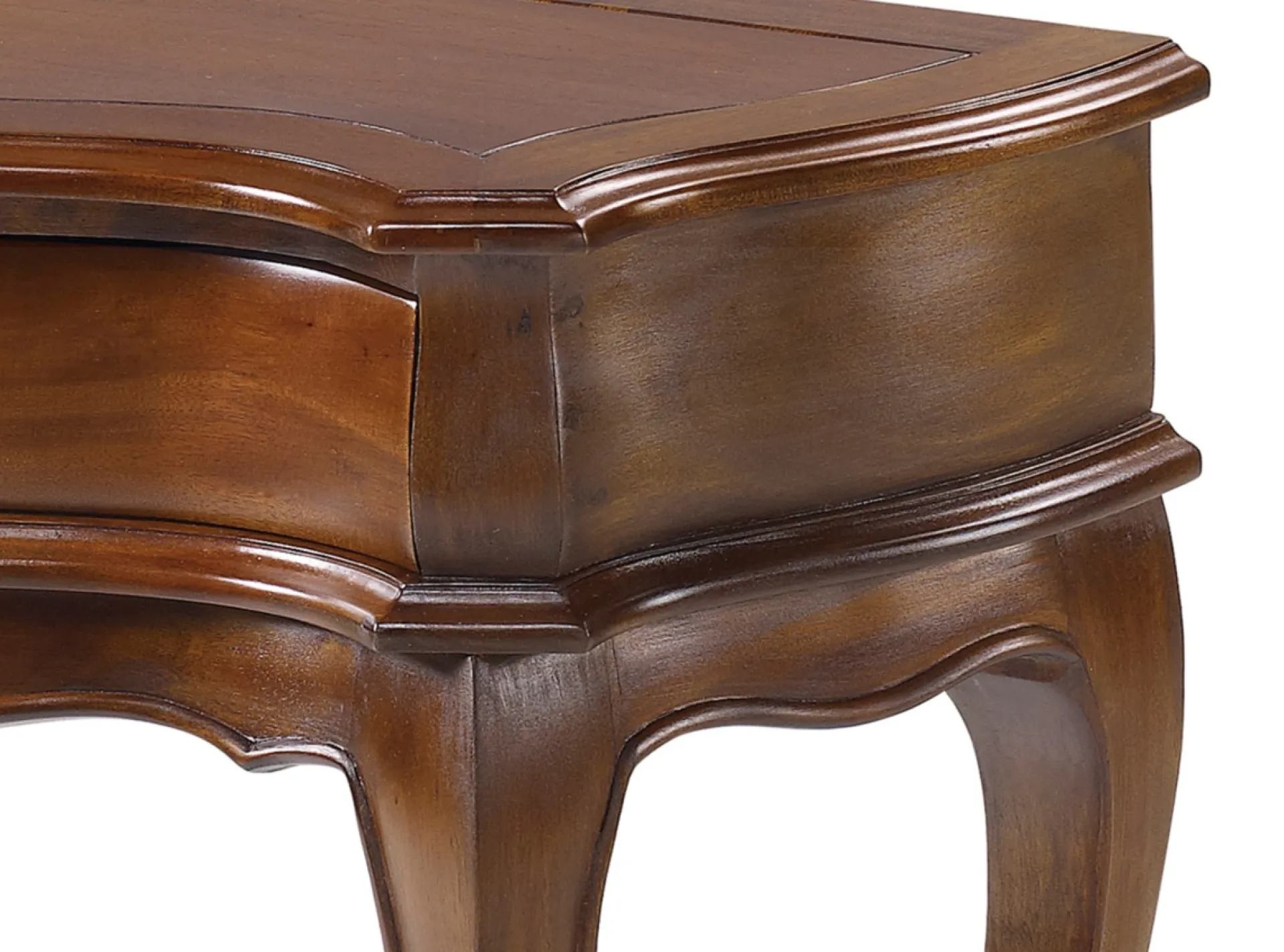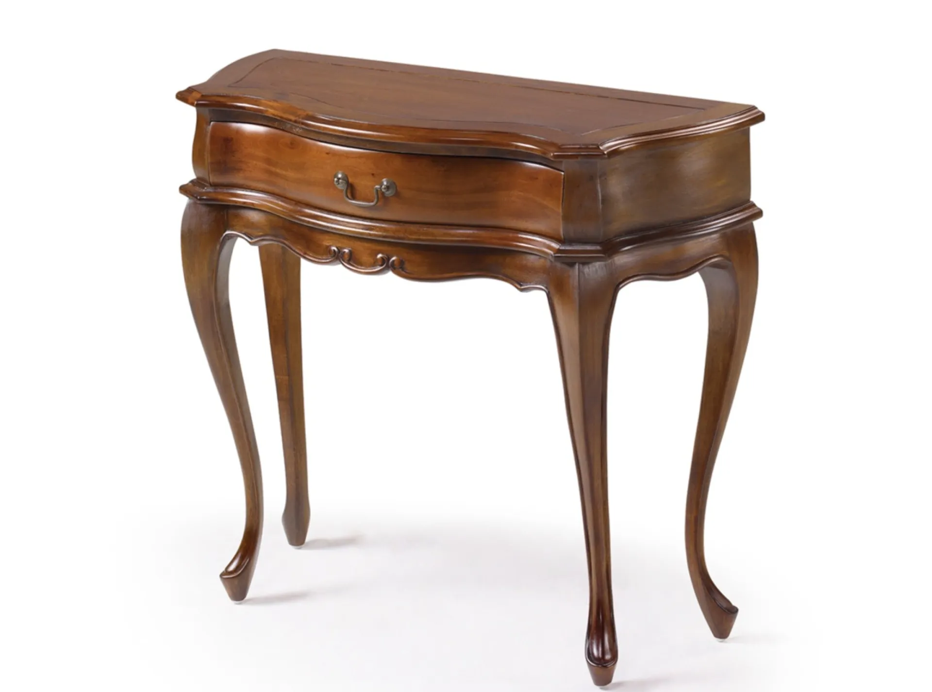 Consola fabricada enmadera maciza de caoba con un espacioso cajón con tirador en color bronce.
