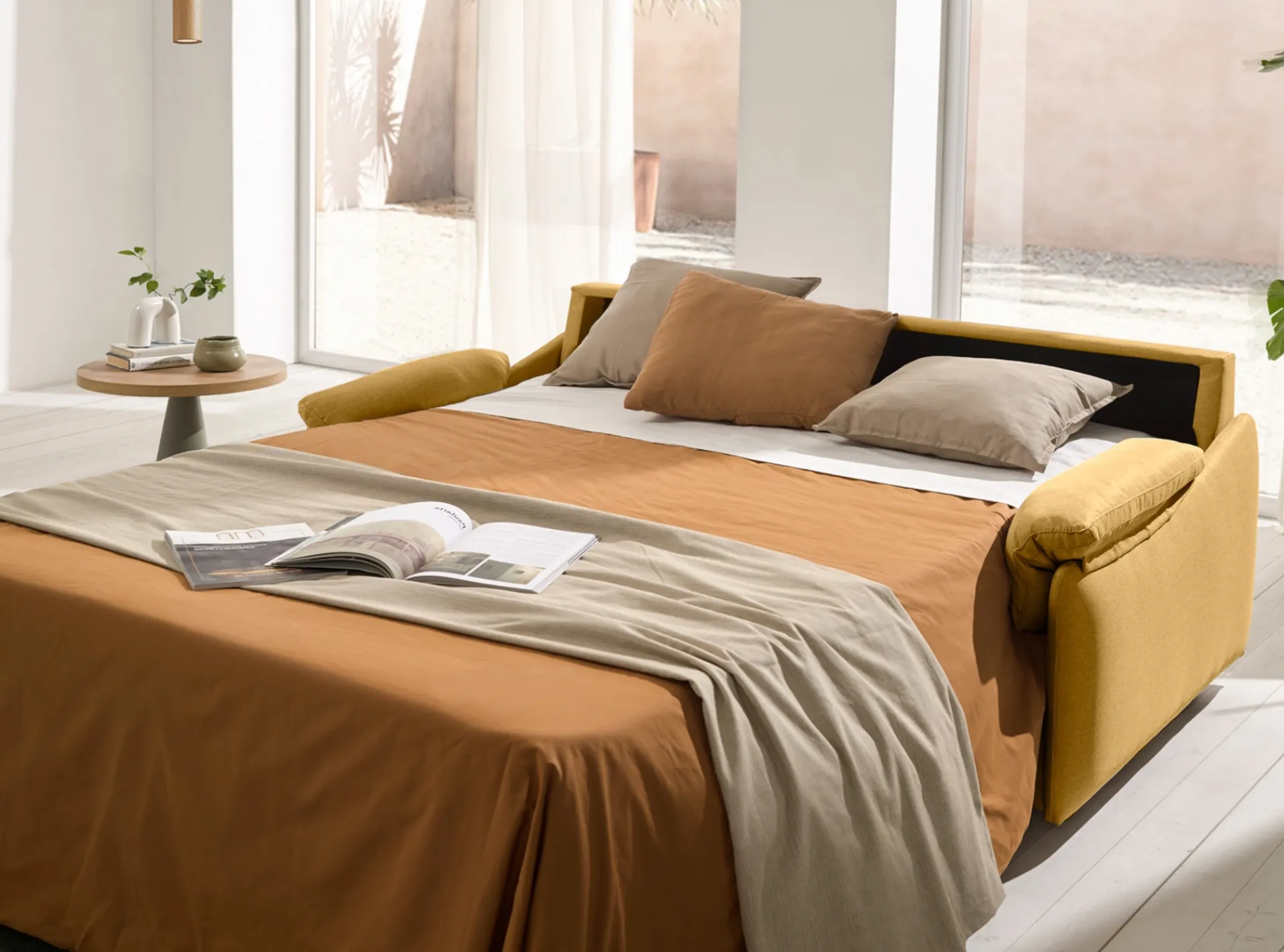 210 cm de fondo con la cama abierta.