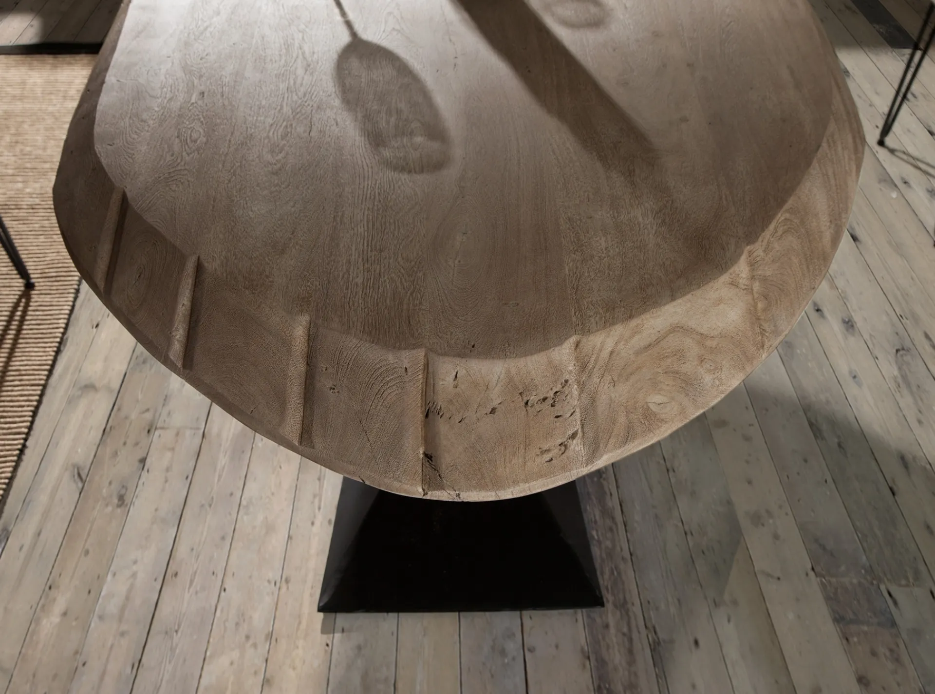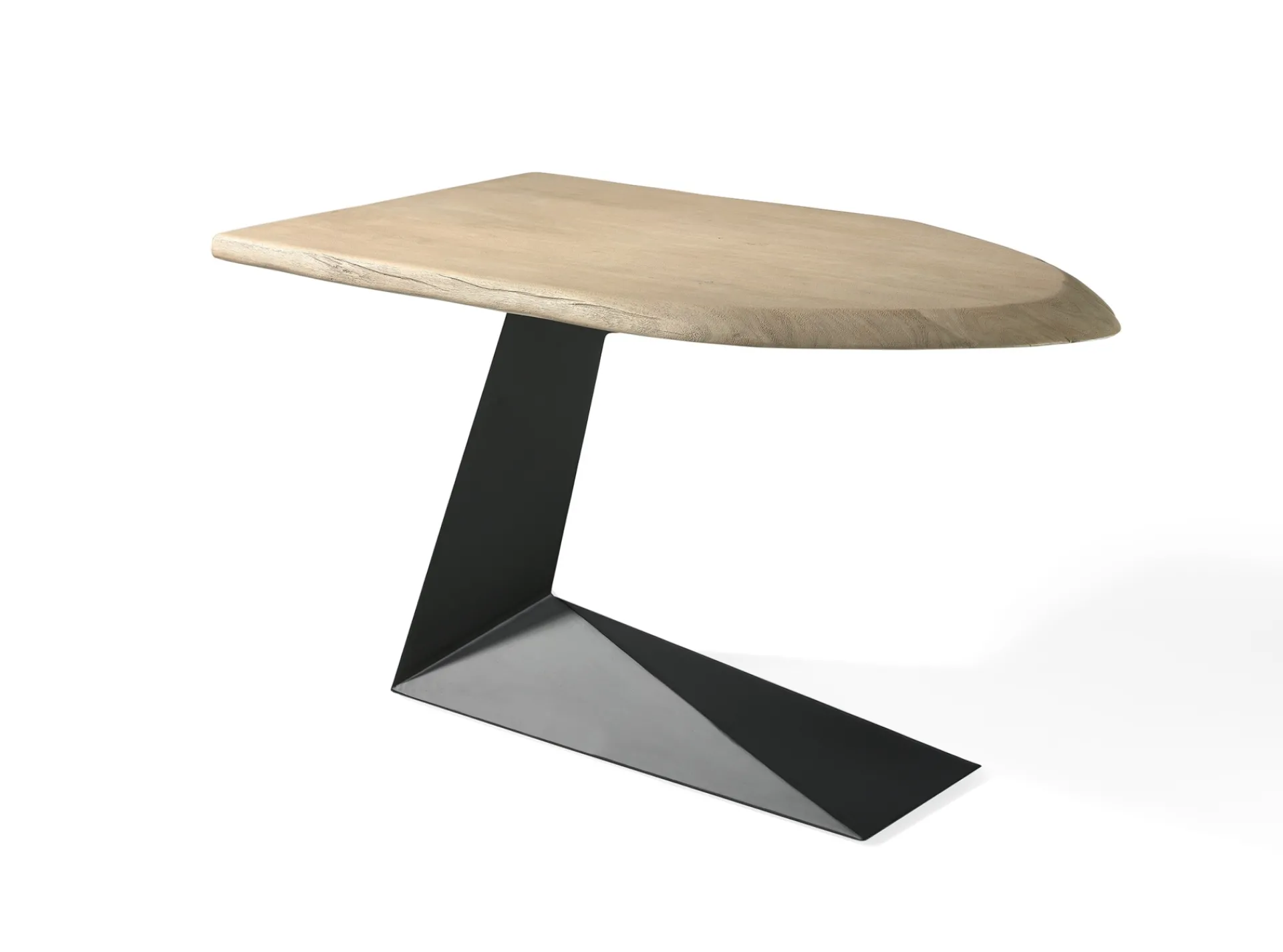 La mesa altaXIAN está realizada en madera maciza de acacia natural con un pie metálico lacado en color negro.