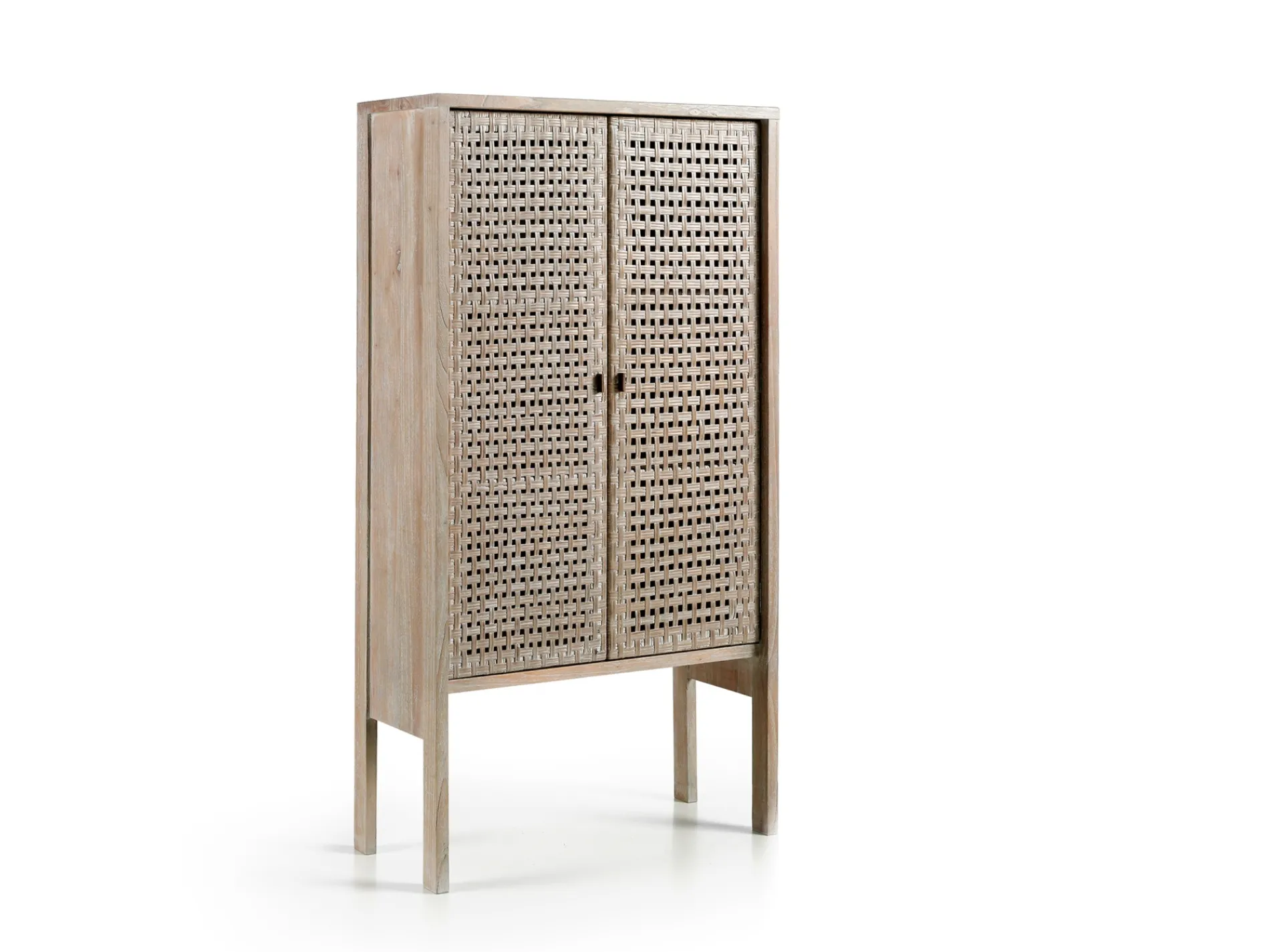 Estructura en madera maciza de acacia natural con tiradores metálicos.