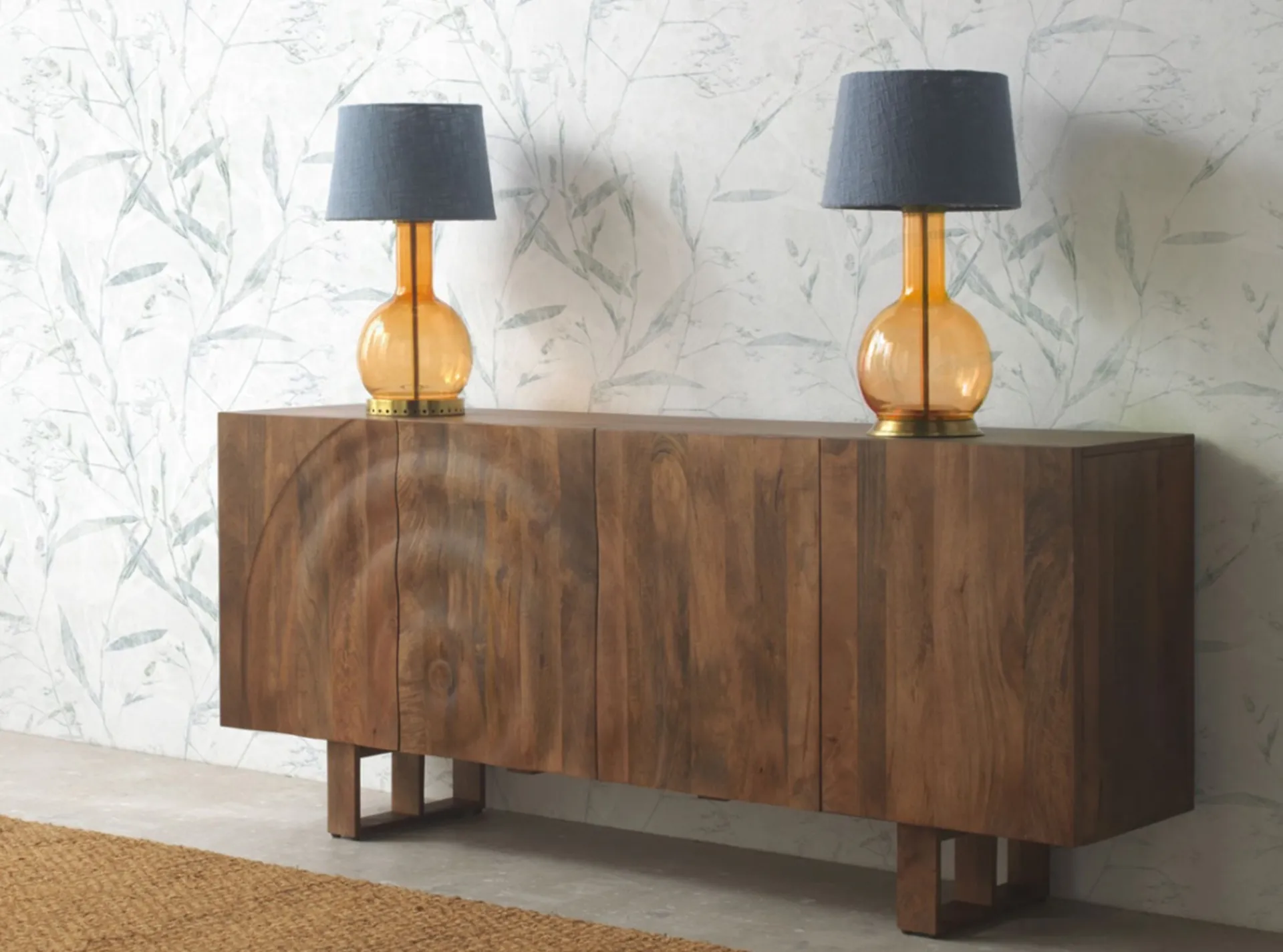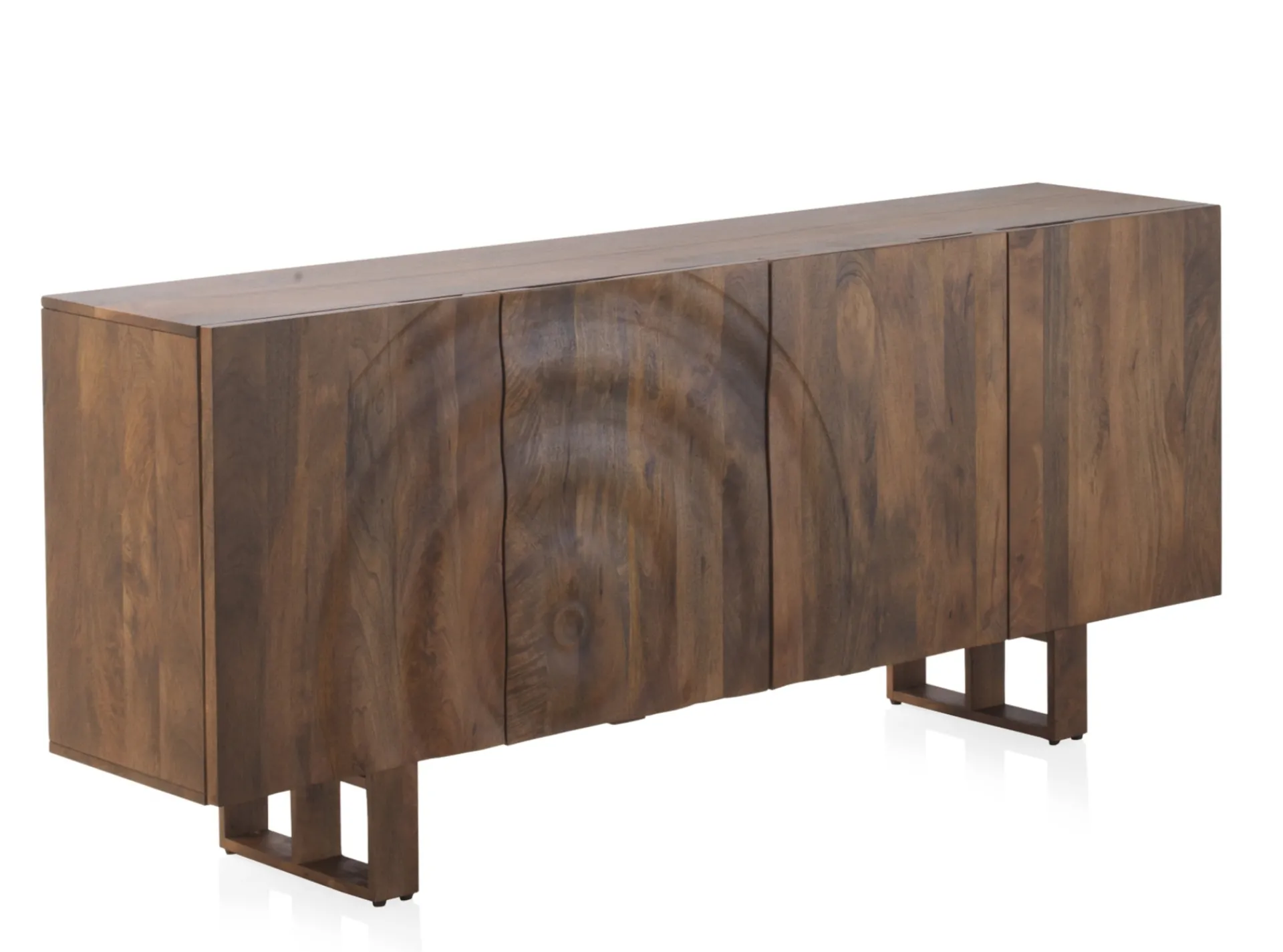 Este elegante aparador de diseño rectangular es perfecto para agregar estilo y funcionalidad a cualquier espacio. Con un acabado natural que resalta la textura y tonalidad única de la madera maciza de mango, este mueble destaca por sus detalles exclusivos, incluyendo dos puertas con relieves en forma de onda, que le dan un toque distintivo y moderno. Ideal para almacenamiento, cuenta con una balda interior fija proporcionando un espacio práctico para organizar y guardar tus pertenencias.
