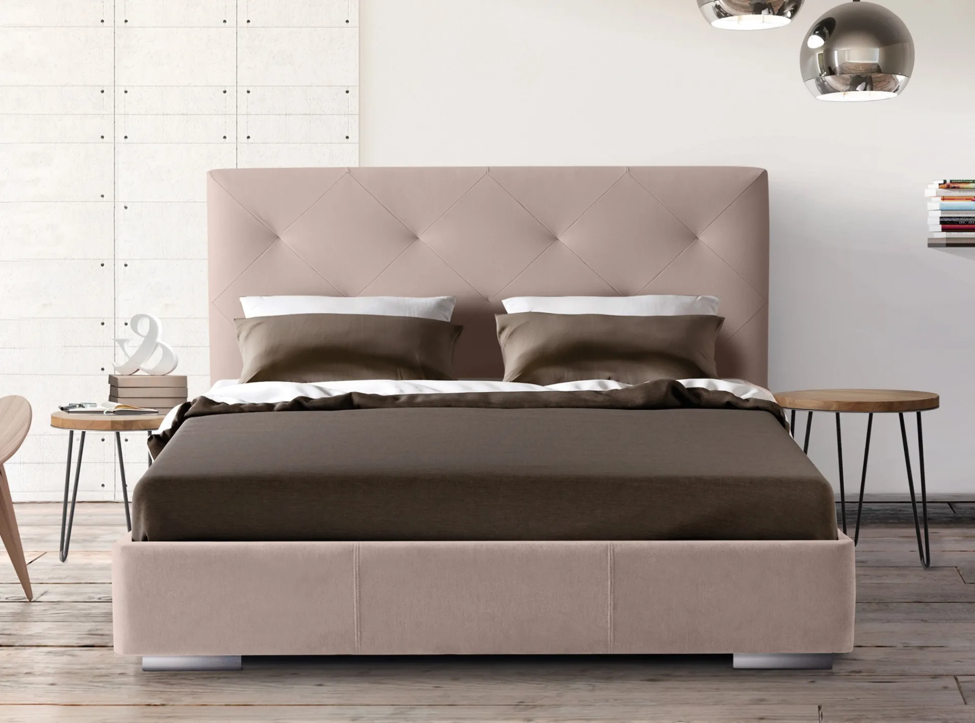 Tapizado en tela (92% poliéster + 8% nylon) acolchado a rombos con tiro.