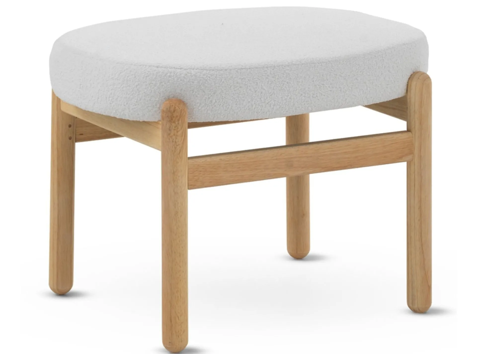 Asiento tapizado en tela de boucle. Patas de madera maciza de pino.