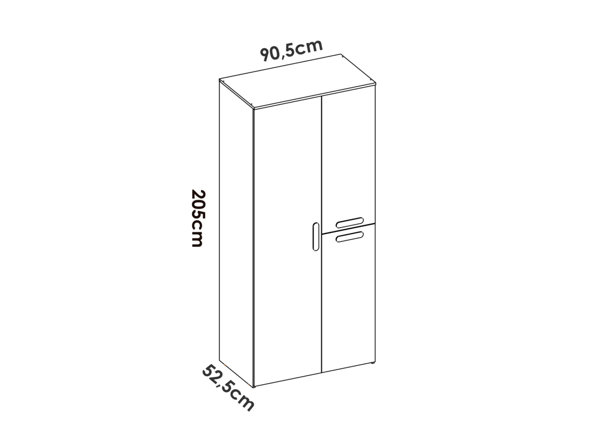 90 cm de ancho x 205 cm de alto x 52 cm de fondo