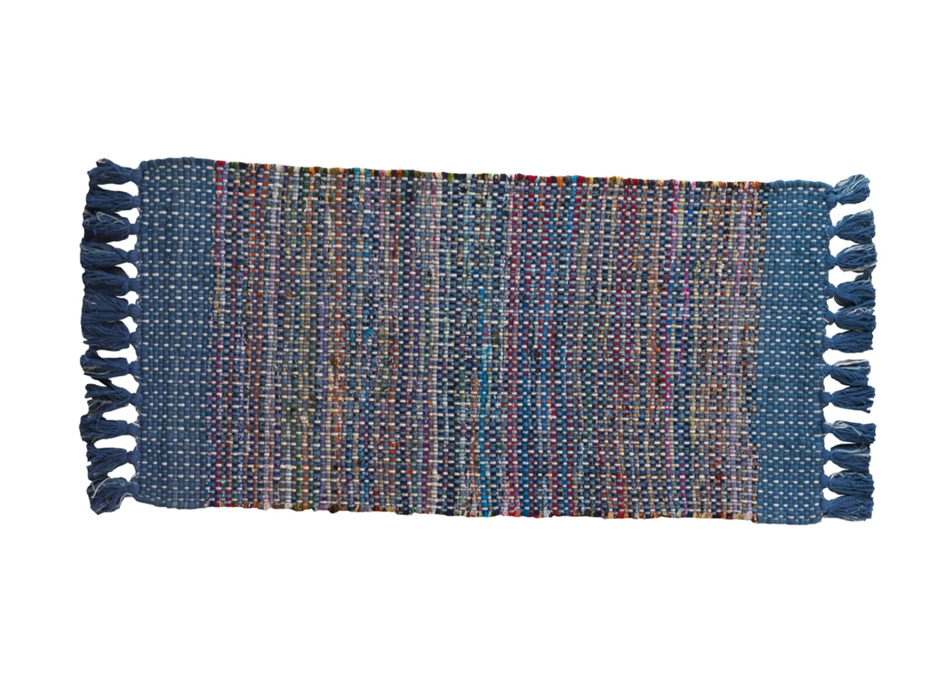 Decora tu hogar con esta alfombra tejida a mano con tela algodón y poliéster ideal para cualquier estancia.