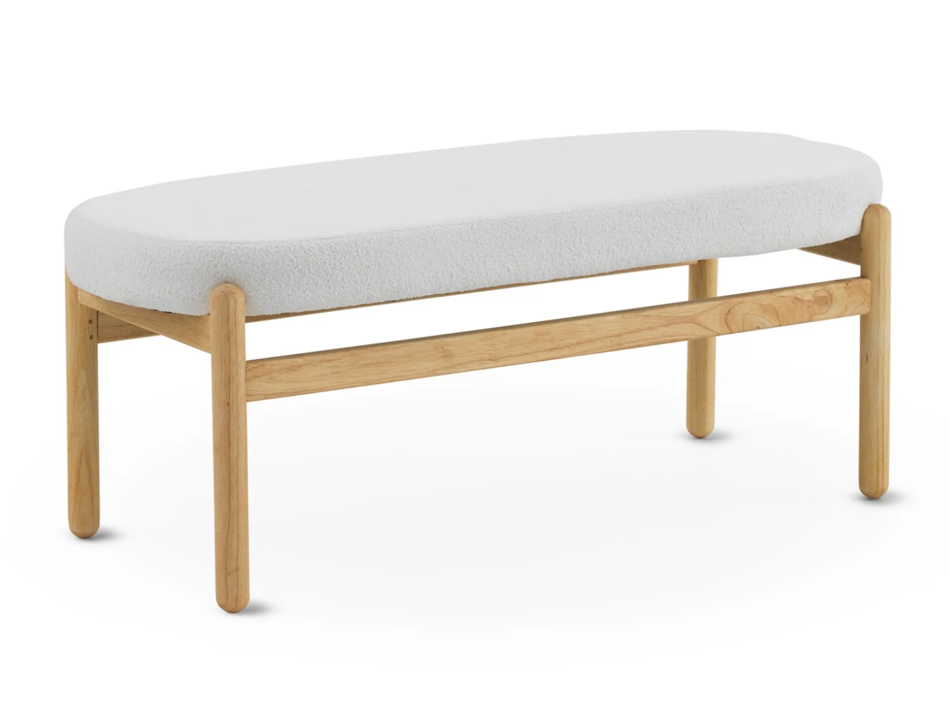 Asiento tapizado en tela de boucle. Patas de madera maciza de pino.
