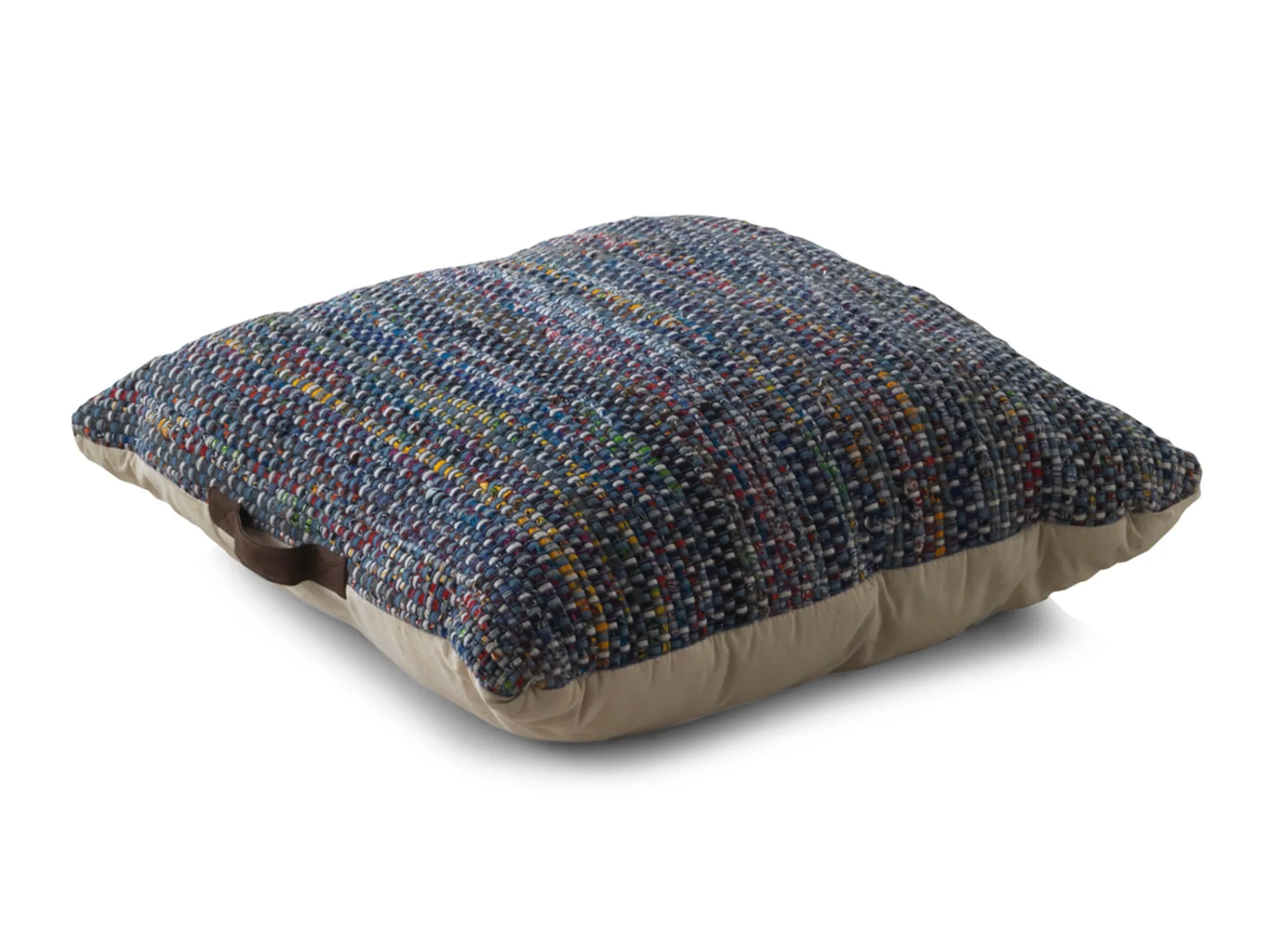 Decora tu hogar con este cojín puf tejido a mano con tela poliéster y algodón ideal para practicar yoga.