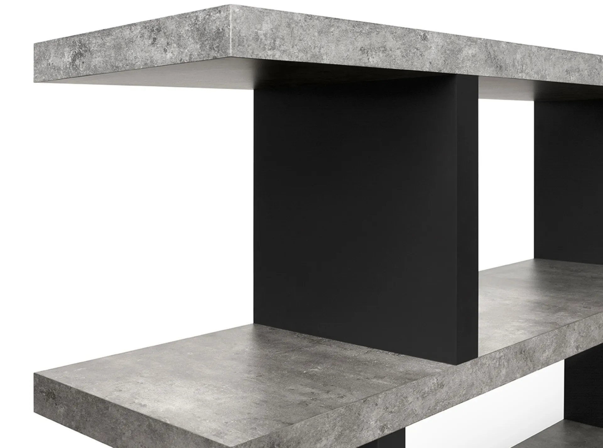 Laca negra y chapa industrial en acabado cemento, sobre tableros de DM.