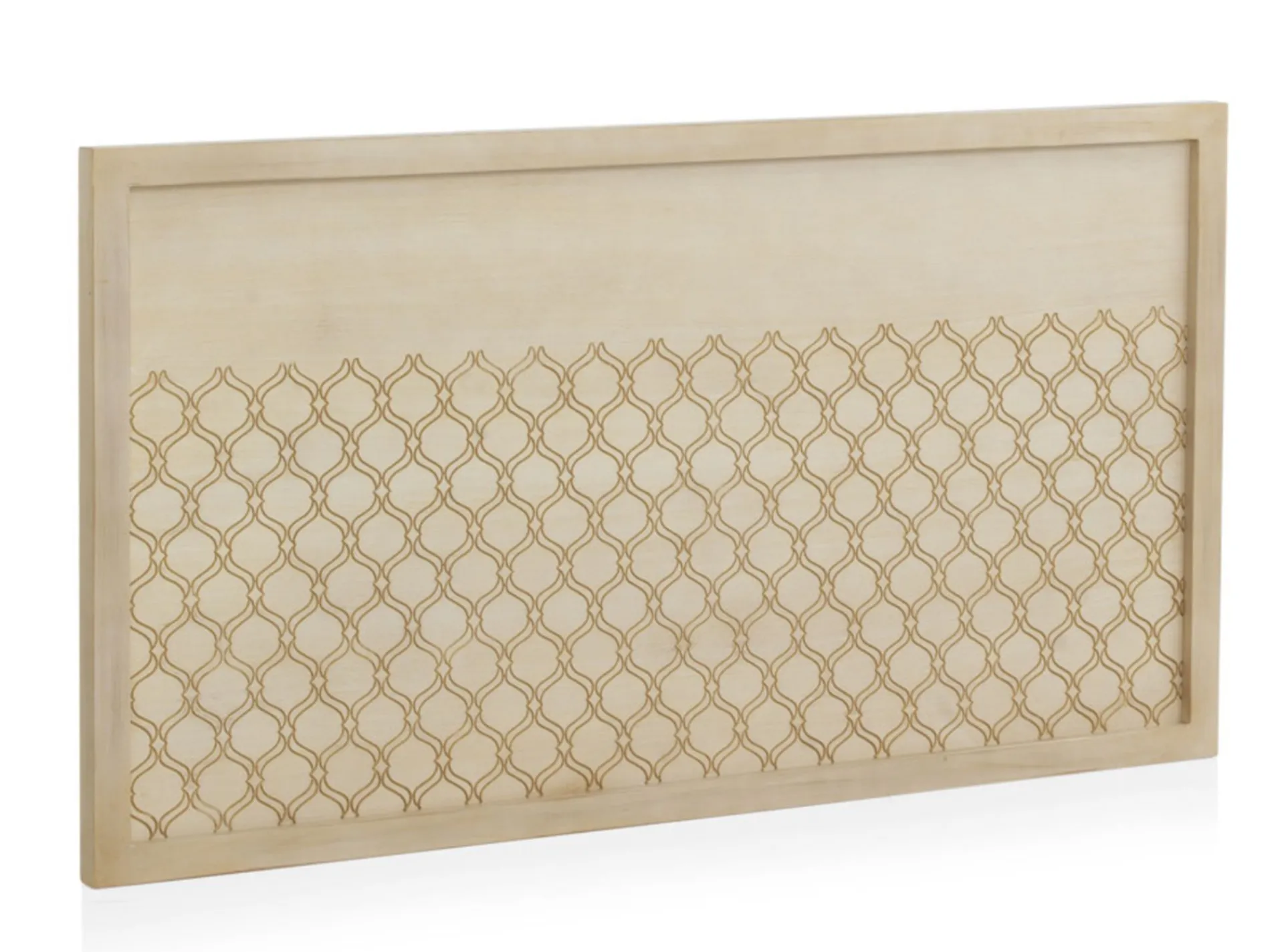 Frente labrado con dibujo geométrico y pintado en color oro viejo.
