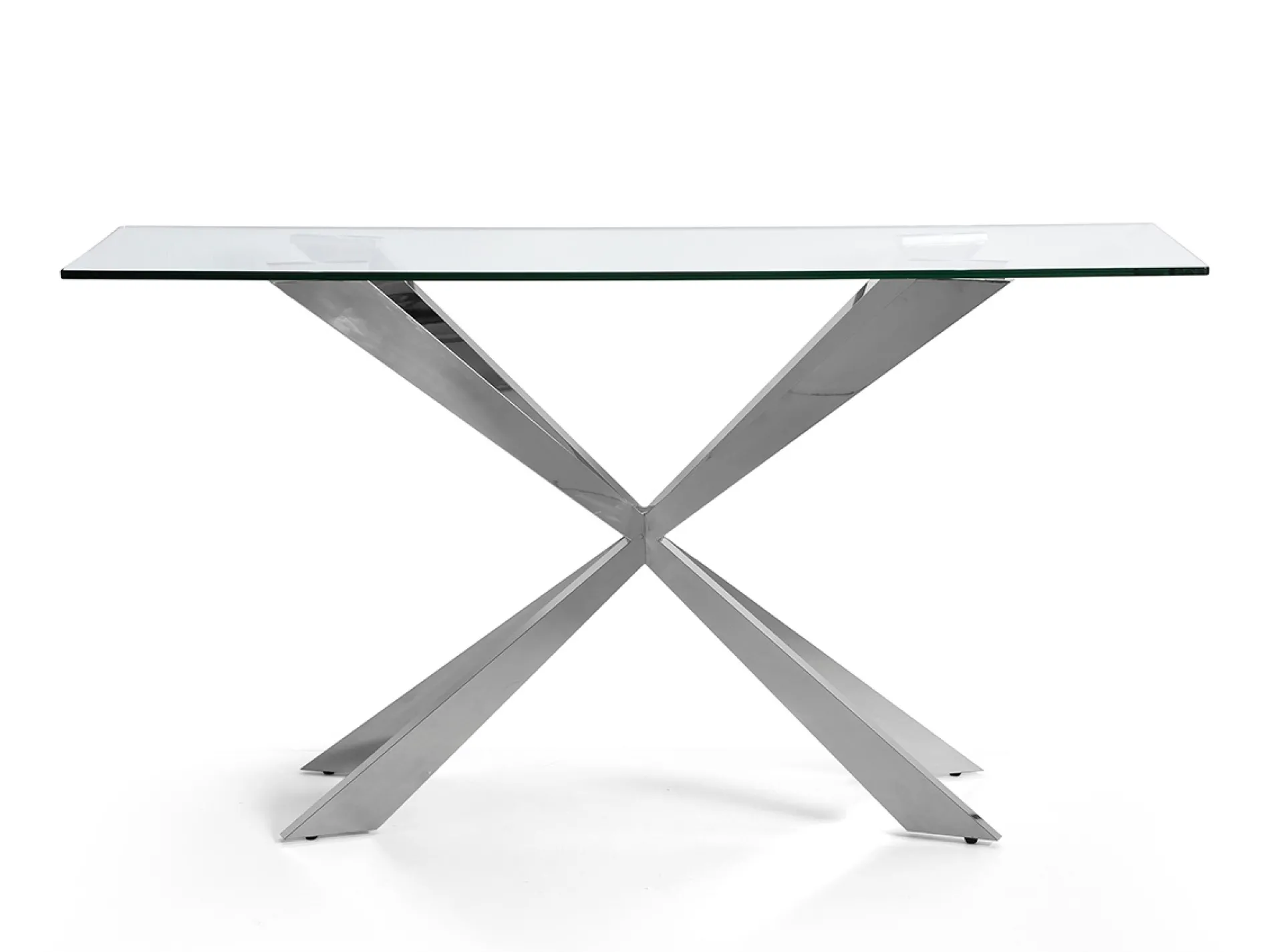 Esta consola enriquece cualquier espacio donde se ubique. Su elegante y robusta base de acero inoxidable hacen de ella una pieza especialmente atractiva.