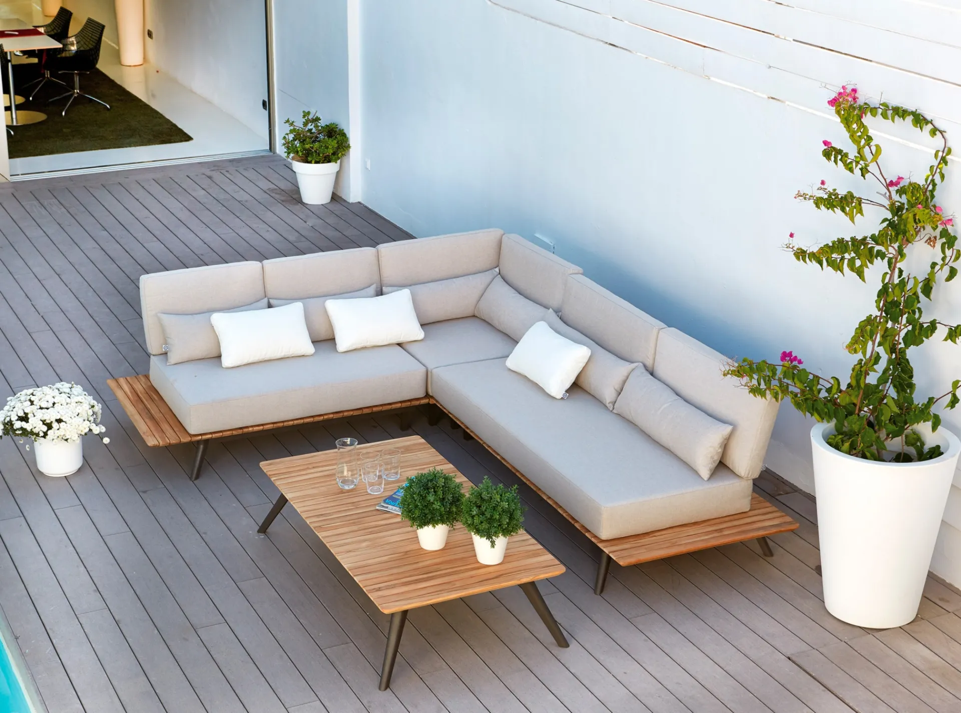 En madera maciza de teca natural.