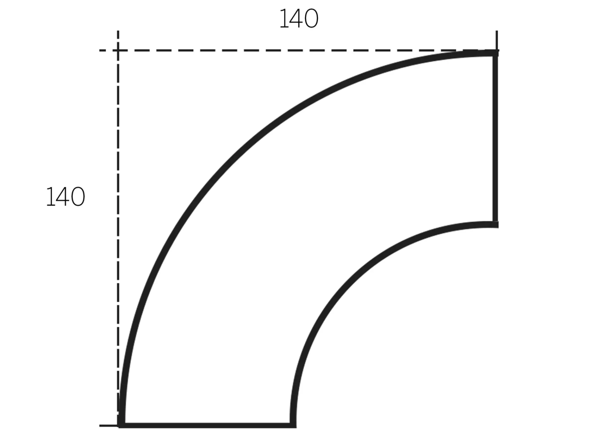 140 cm de ancho x 80 cm de alto x 140 cm de fondo.