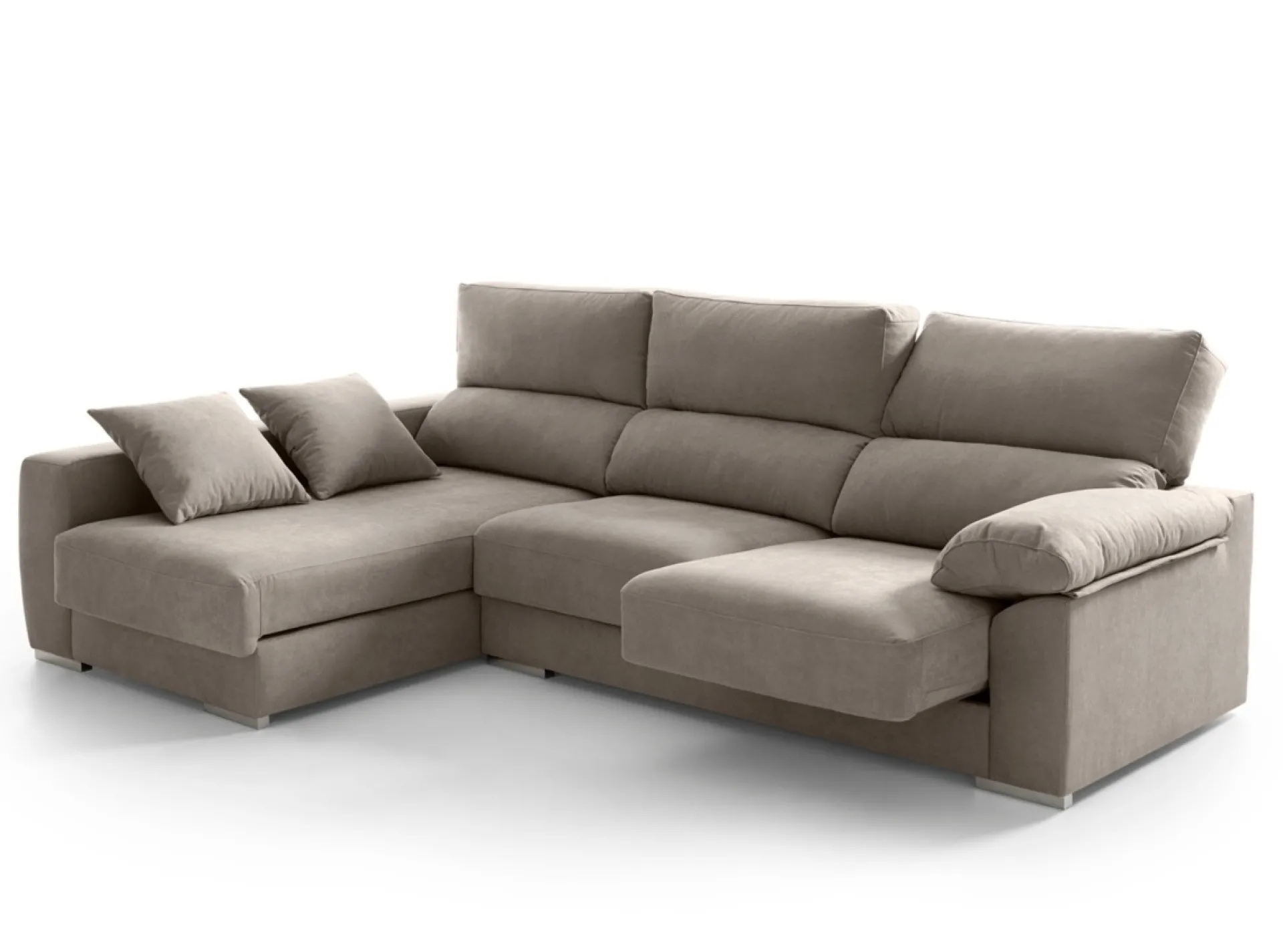 Los asientos deslizantes y loscabezales reclinables de este chaise longue de diseño contemporáneo hacen de este sofá un producto ideal para cualquier tipo de salón.