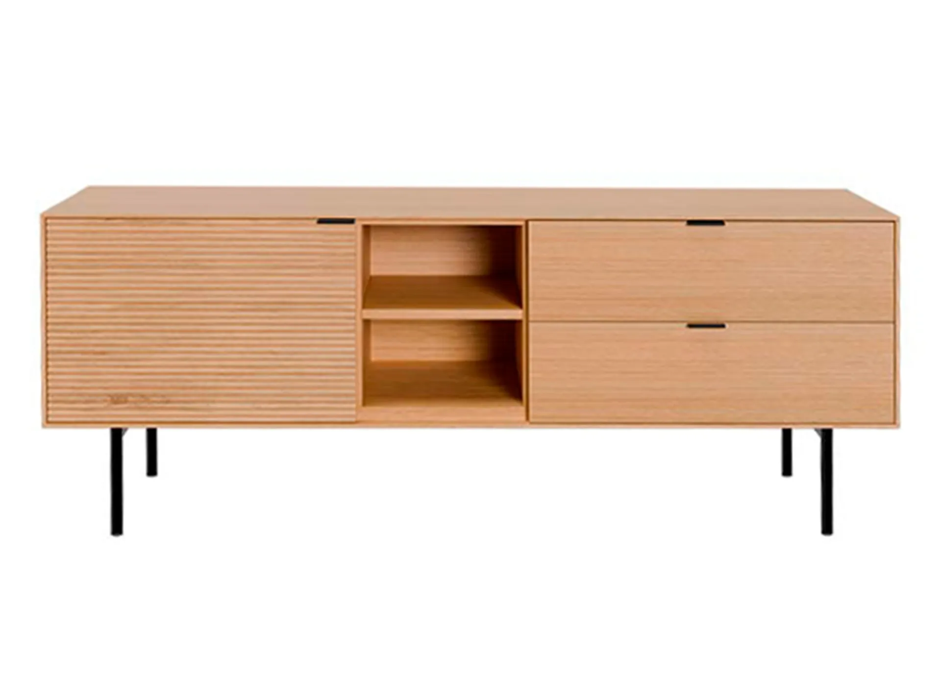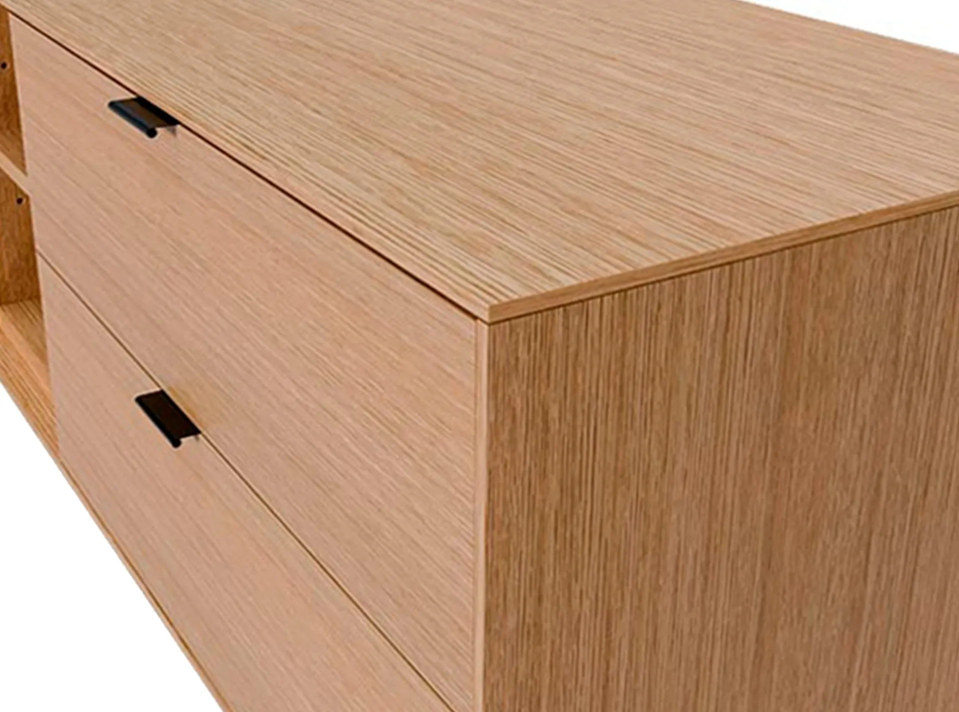 Frente de cajones y puertas en madera maciza de roble rayado.
