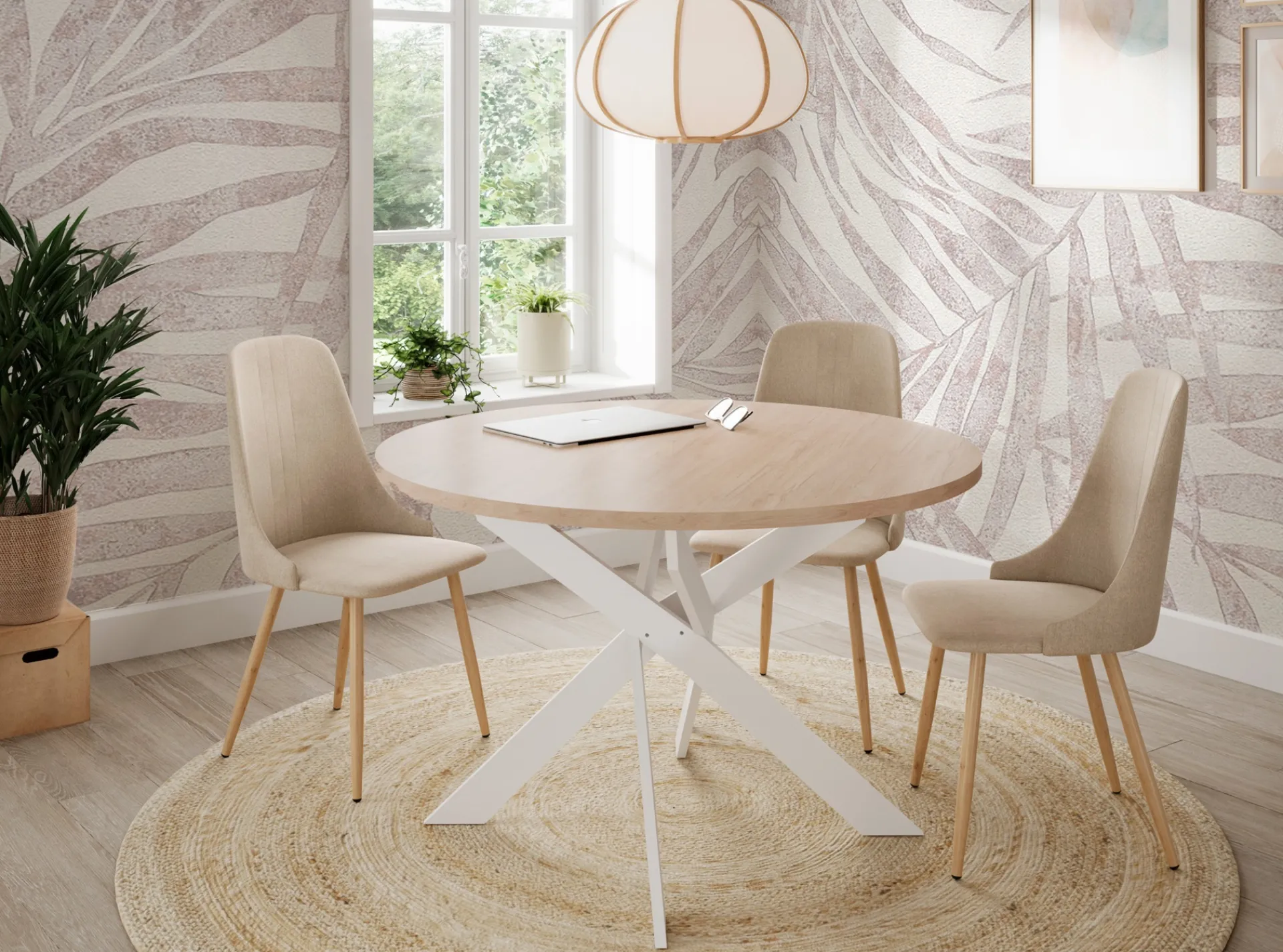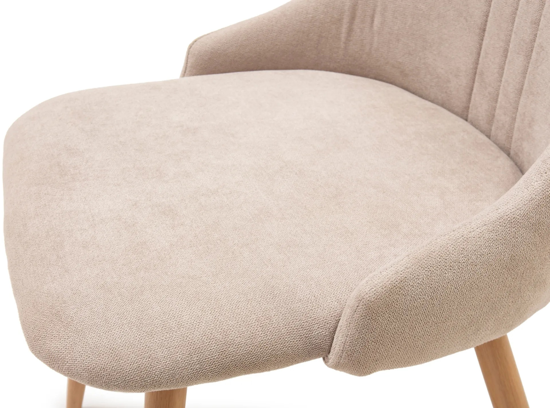 La silla Vulpan dará a tu comedor un aire acogedor gracias a su tapizado de tacto suave, y moderno por sus finas patas metálicas, las cuales llevan un dibujo impreso que simula a la madera natural.