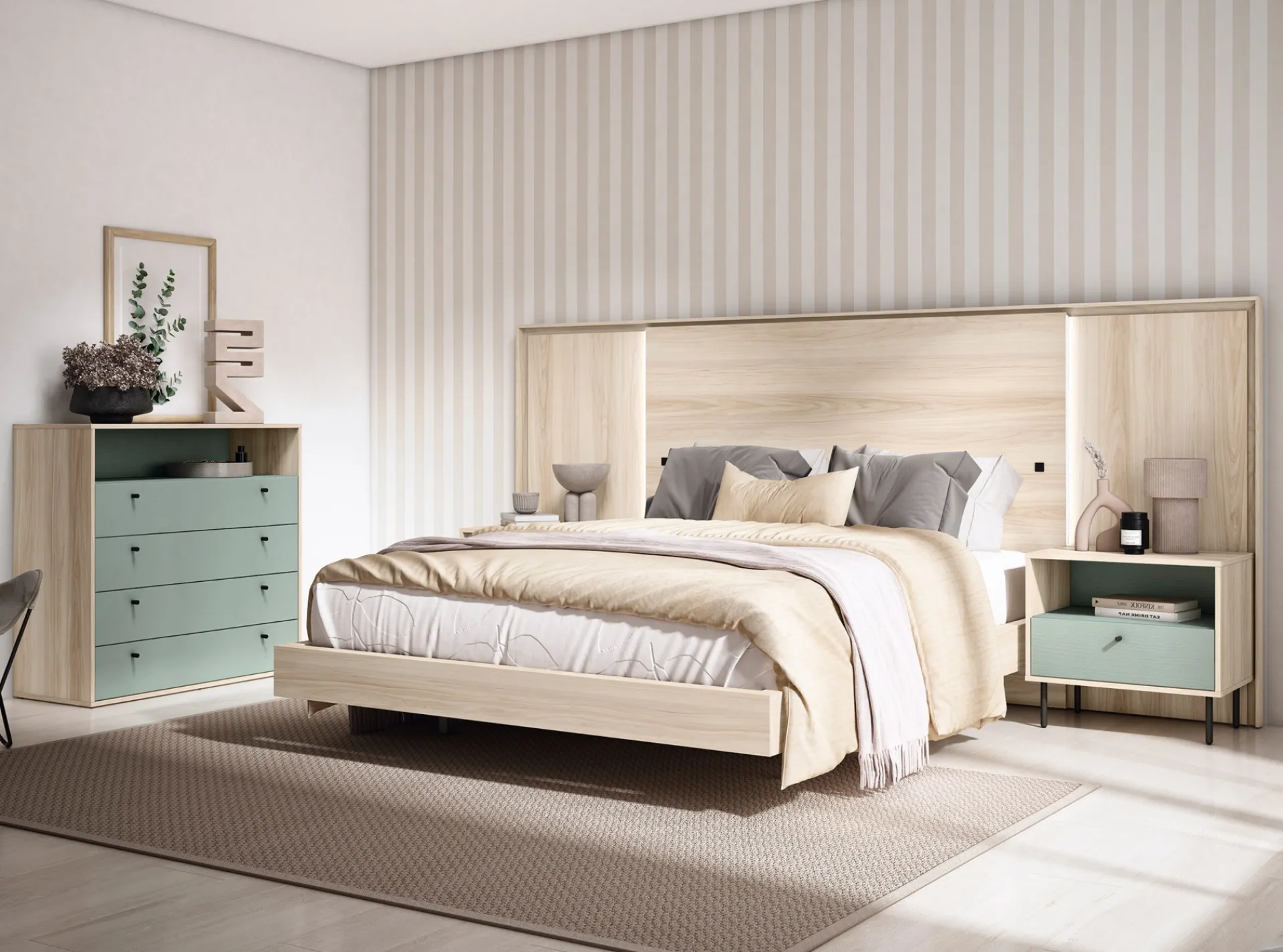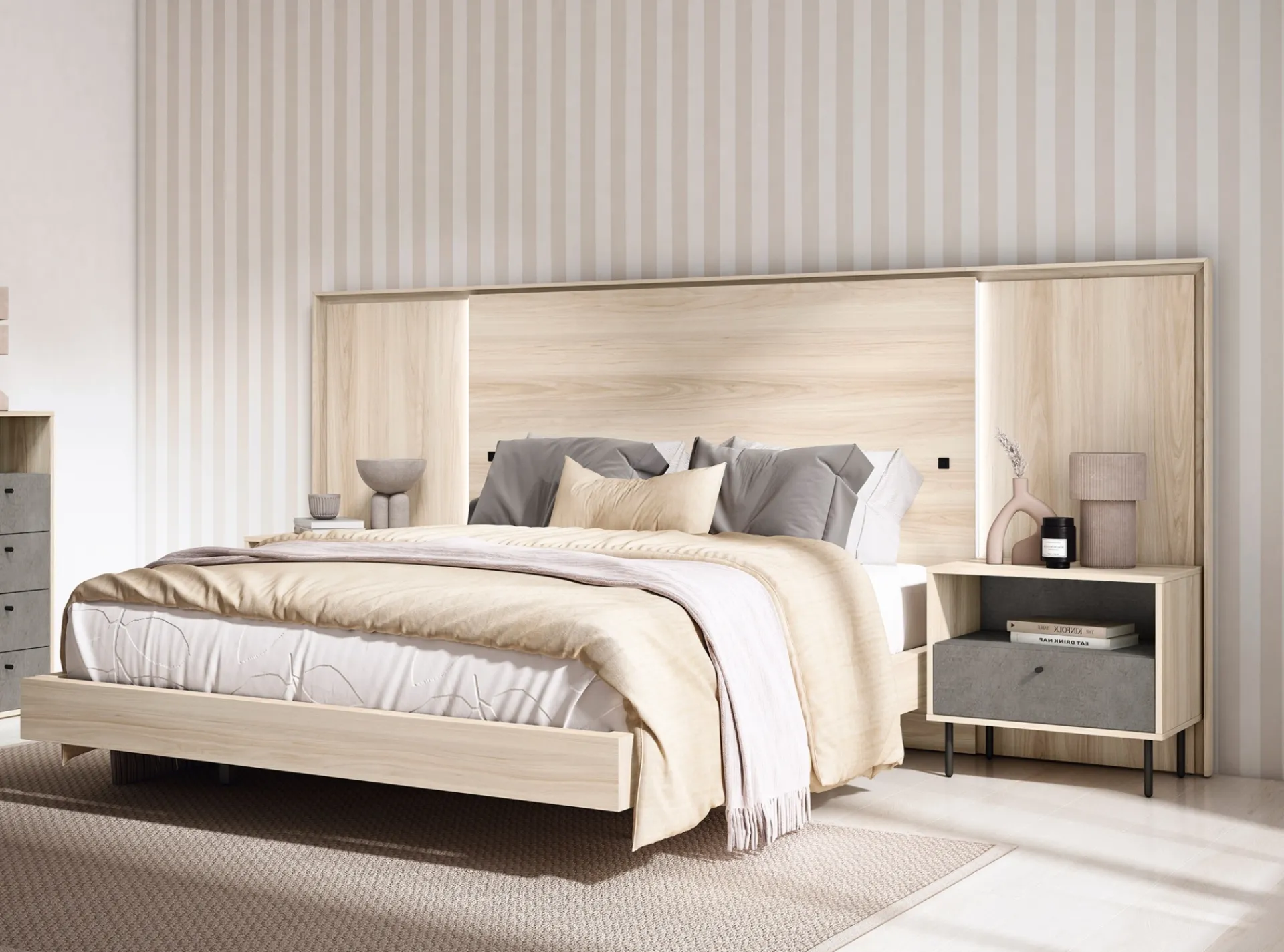 Interruptores en el cabecero para encender la luz. Precisa ir conectado a la corriente.