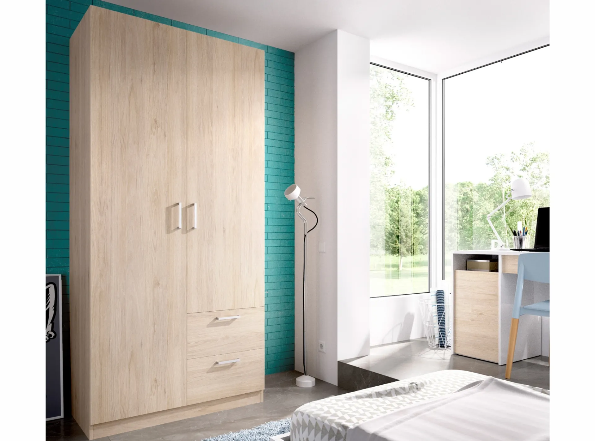 Tiradores ABS en color aluminio.