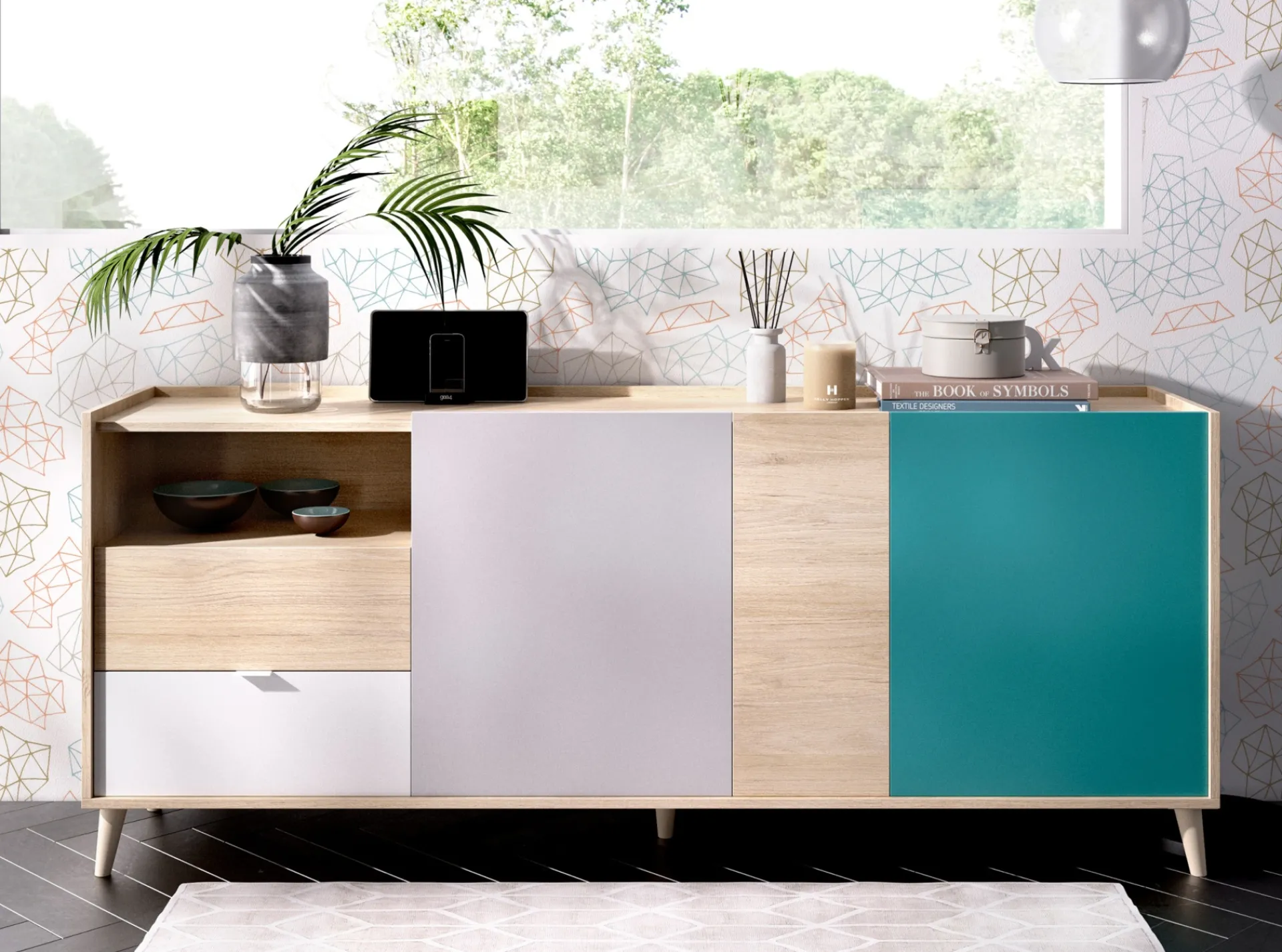 Patas de ABS en acabado roble natural.