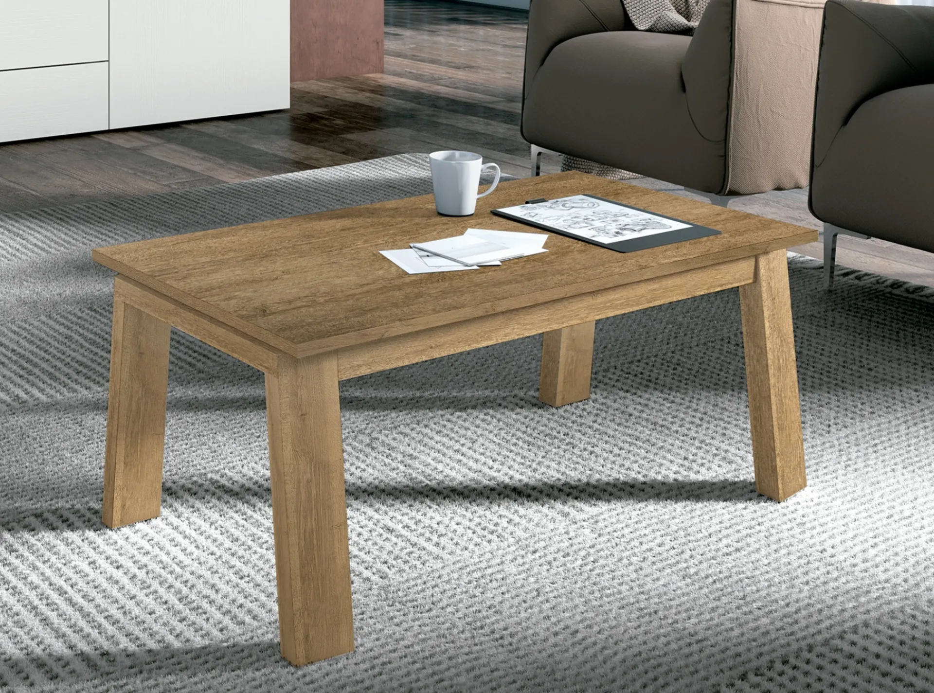 Completa tu salón con esta mesa elevable que podrás utilizar cómodamente desde el sofá y en el interior de la cual también podrás guardar cosas.