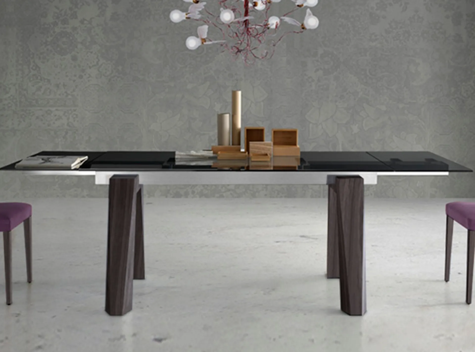 Disfruta de tus comidas familiares en esta impresionante mesa extensible con tapa en cristal oscurecido.