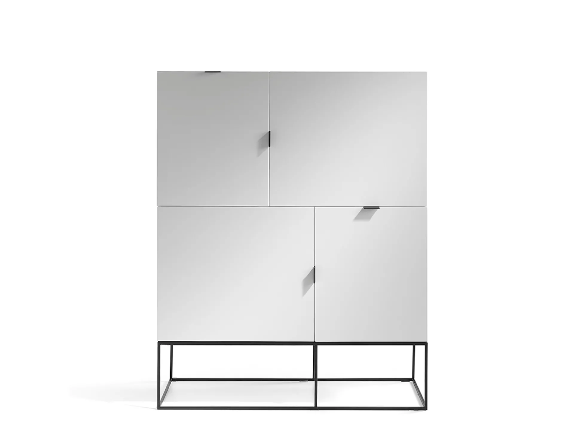 Apuesta por este aparador alto con 4 puertas. Un atractivo diseño en acabado blanco alto brillo, enfatizado por la estructura de su base y sus tiradores, elementosmetálicos pintados en negro mate.