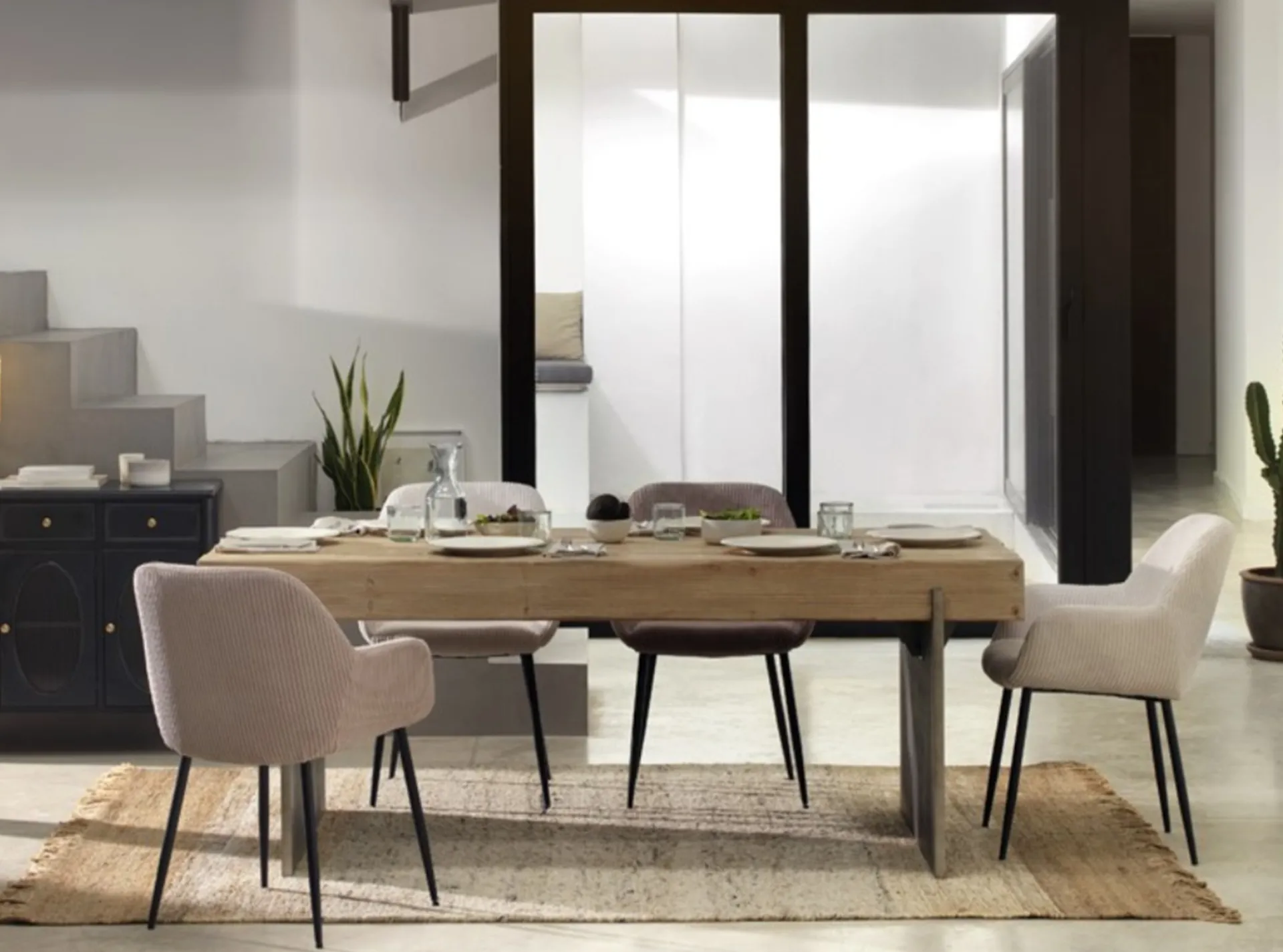Elegantes sillas tapizadas en tela de pana combina diseño acogedor y comodidad, convirtiéndose en la elección ideal para cualquier espacio. Su estructura estilizada y el bonito tapizado la convierten en una pieza ideal para cualquier espacio.