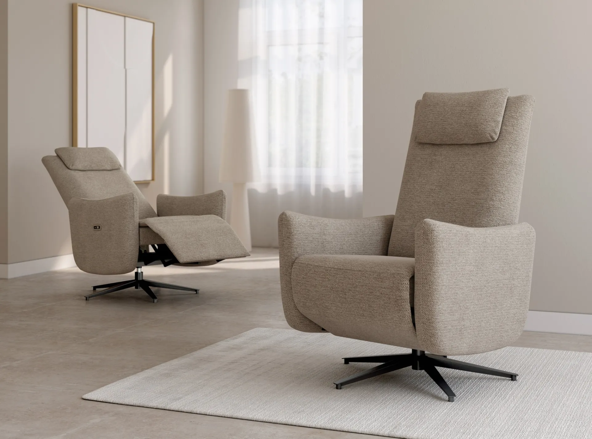 Perfecto sillón con un motor eléctrico para relajarse y disfrutar de un buen libro o una película. Está tapizado en un suave tejido y cuenta con un mecanismo reclinable que permite ajustar el respaldo a la posición deseada. La base giratoria del sillón le confiere una gran movilidad y versatilidad, permitiendo que pueda ser orientada en cualquier dirección.