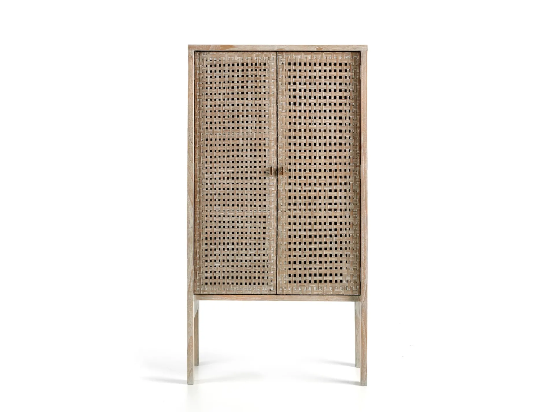 Estructura en madera maciza de acacia natural con tiradores metálicos.