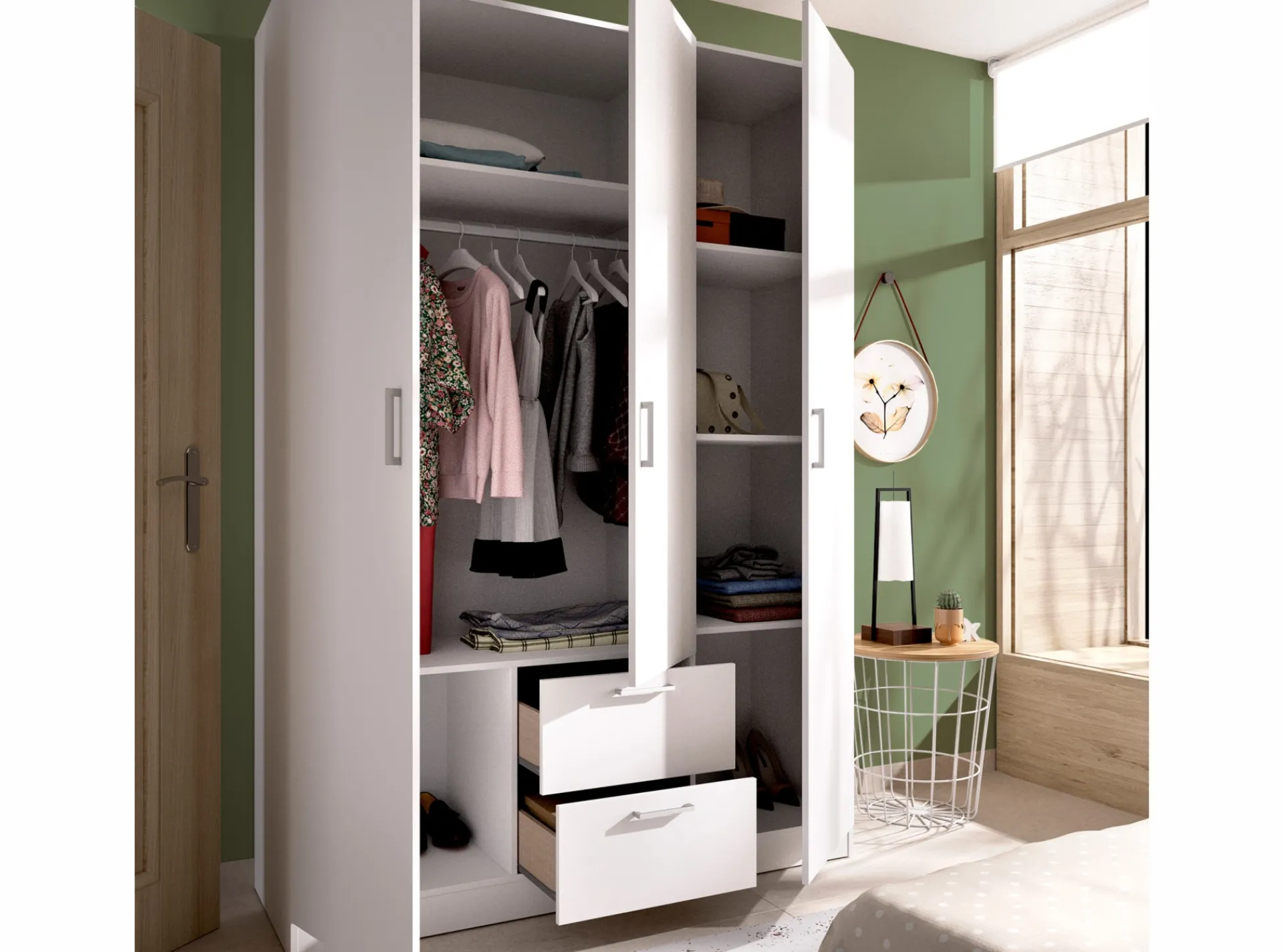 Tiradores ABS en color aluminio.