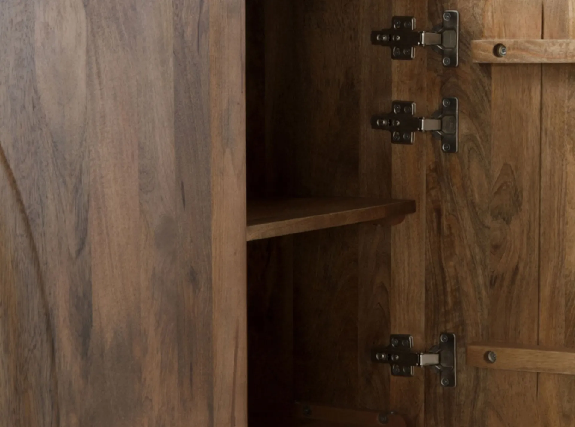 Este elegante aparador de diseño rectangular es perfecto para agregar estilo y funcionalidad a cualquier espacio. Con un acabado natural que resalta la textura y tonalidad única de la madera maciza de mango, este mueble destaca por sus detalles exclusivos, incluyendo dos puertas con relieves en forma de onda, que le dan un toque distintivo y moderno. Ideal para almacenamiento, cuenta con una balda interior fija proporcionando un espacio práctico para organizar y guardar tus pertenencias.