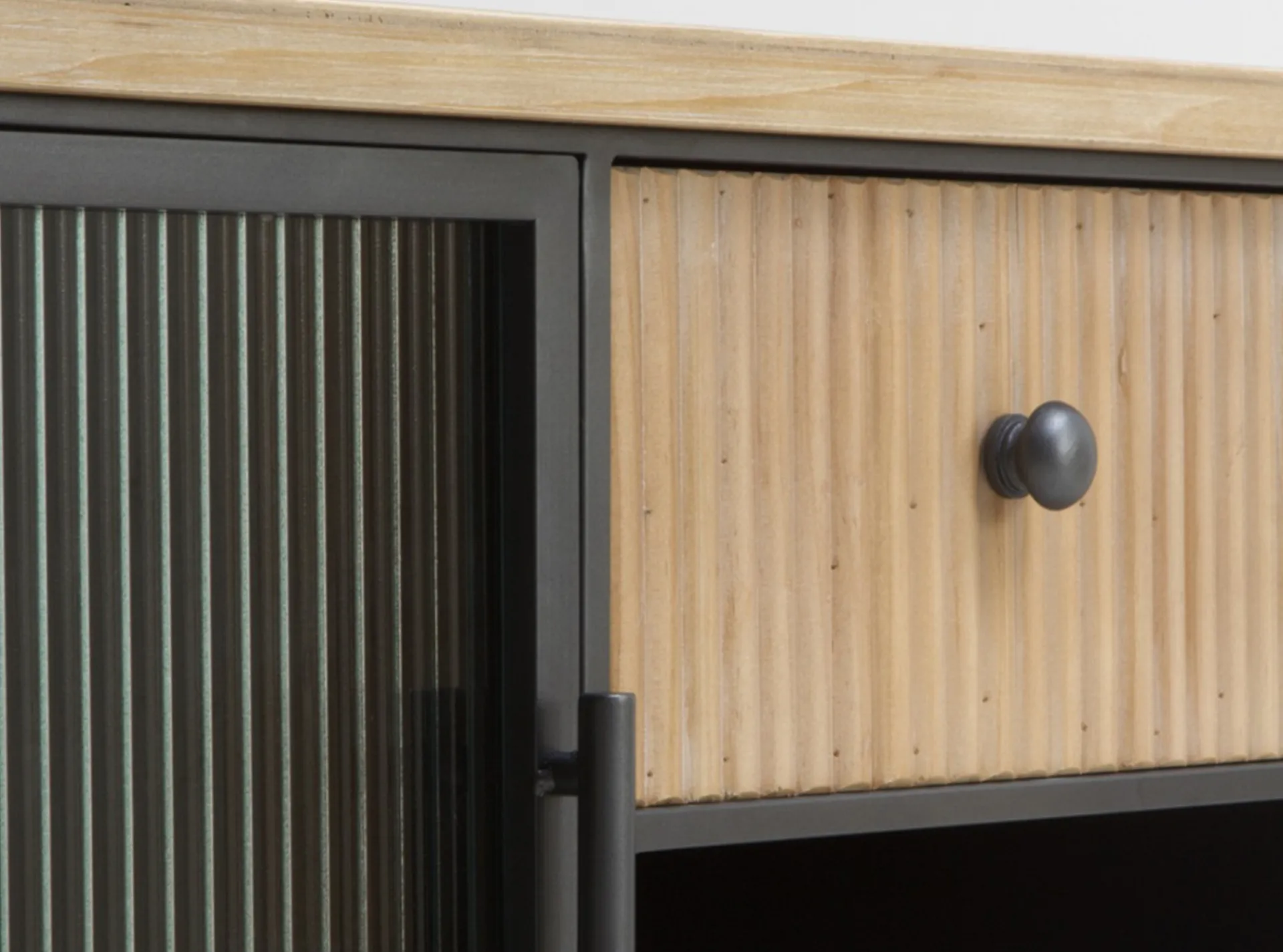Puerta con cristal ondulado semi opaco con balda interior fija.