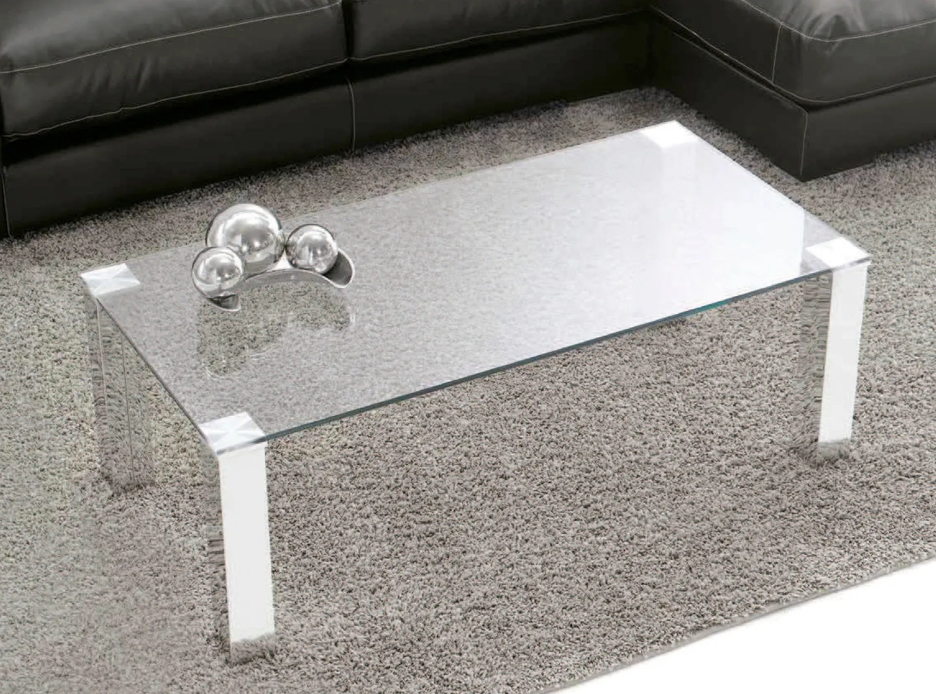 Mesa de centro de cuidado diseño basado en líneas puras y sencillas deacero ycristal que encajará en cualquier ambiente.
