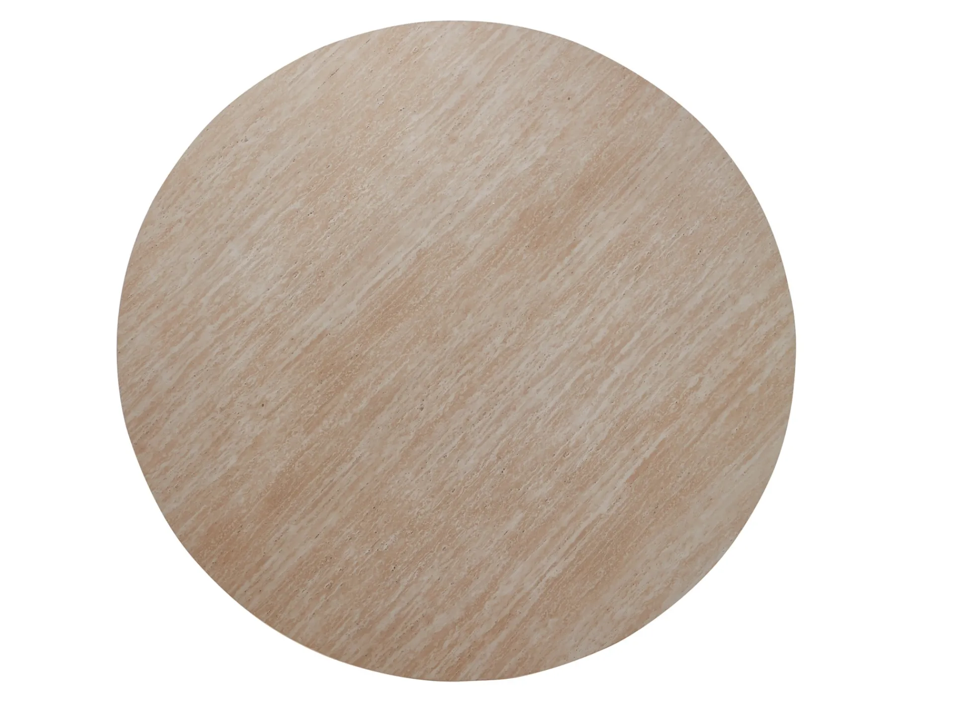 La mesa redonda Kelvin se caracteriza por su acabado en símil mármol y el pie estriado; un punto focal allá donde la ubiques.